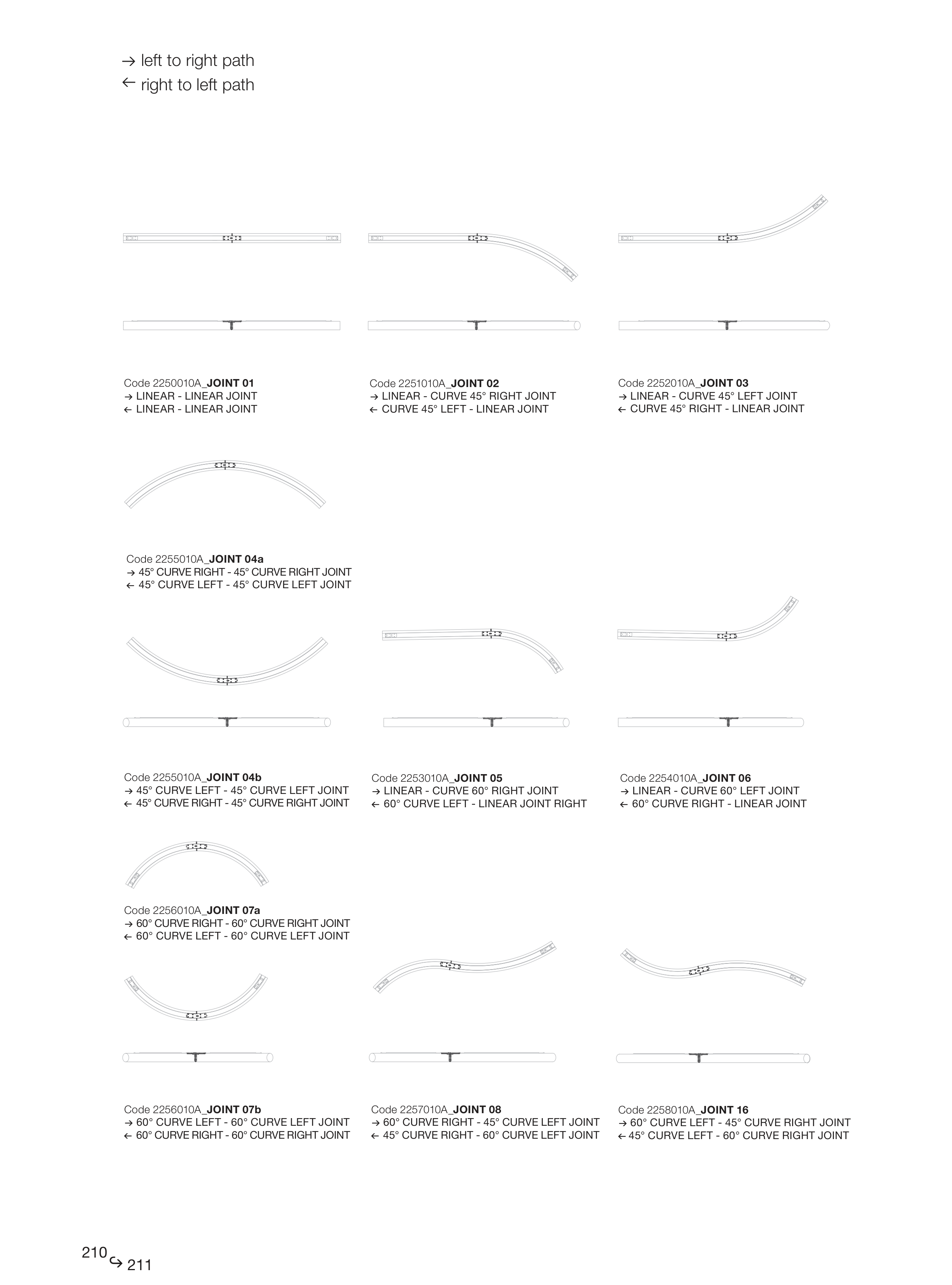→ 60° CURVE RIGHT - 45° CURVE LEFT JOINT