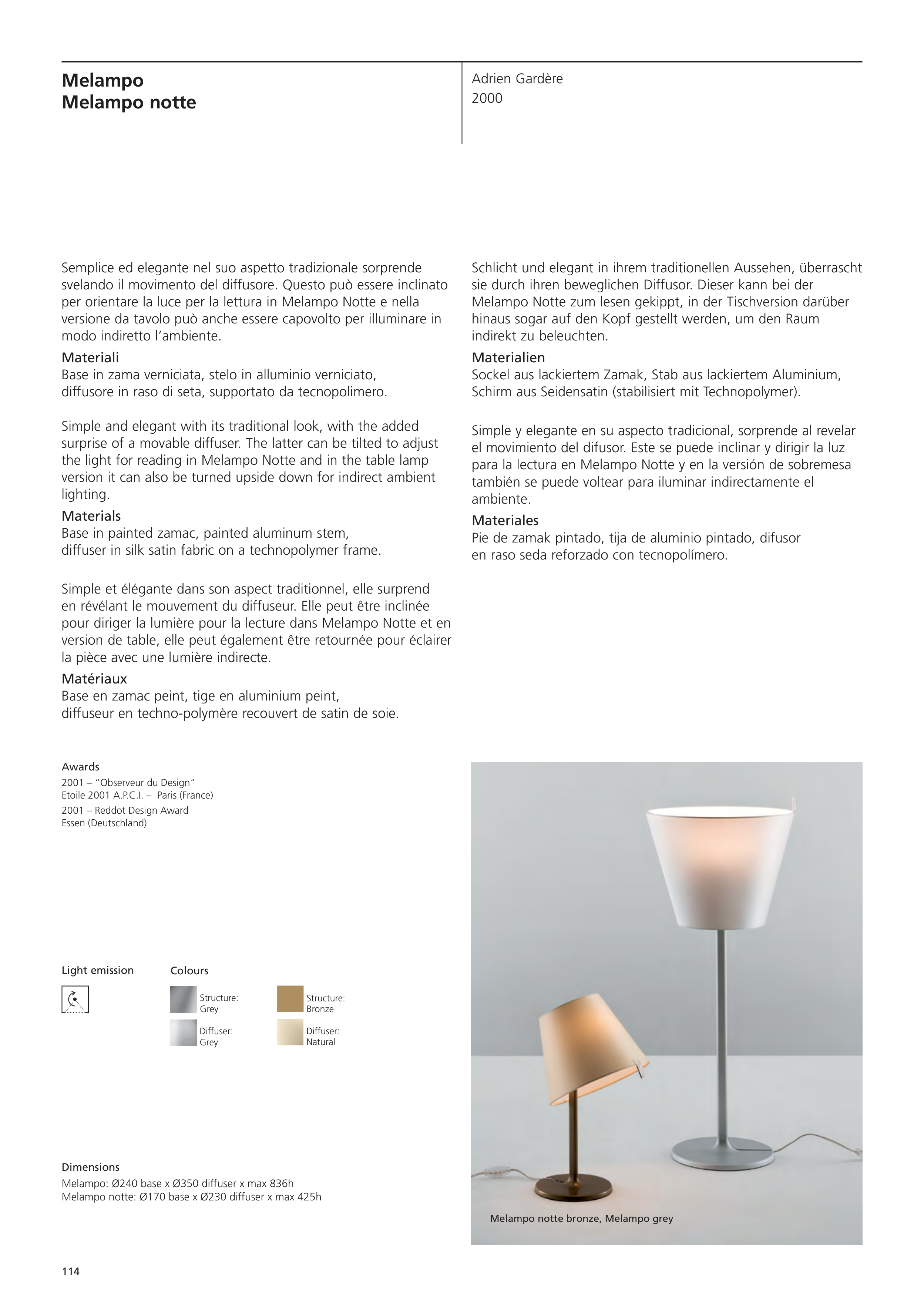 the light for reading in Melampo Notte and in the table lamp
