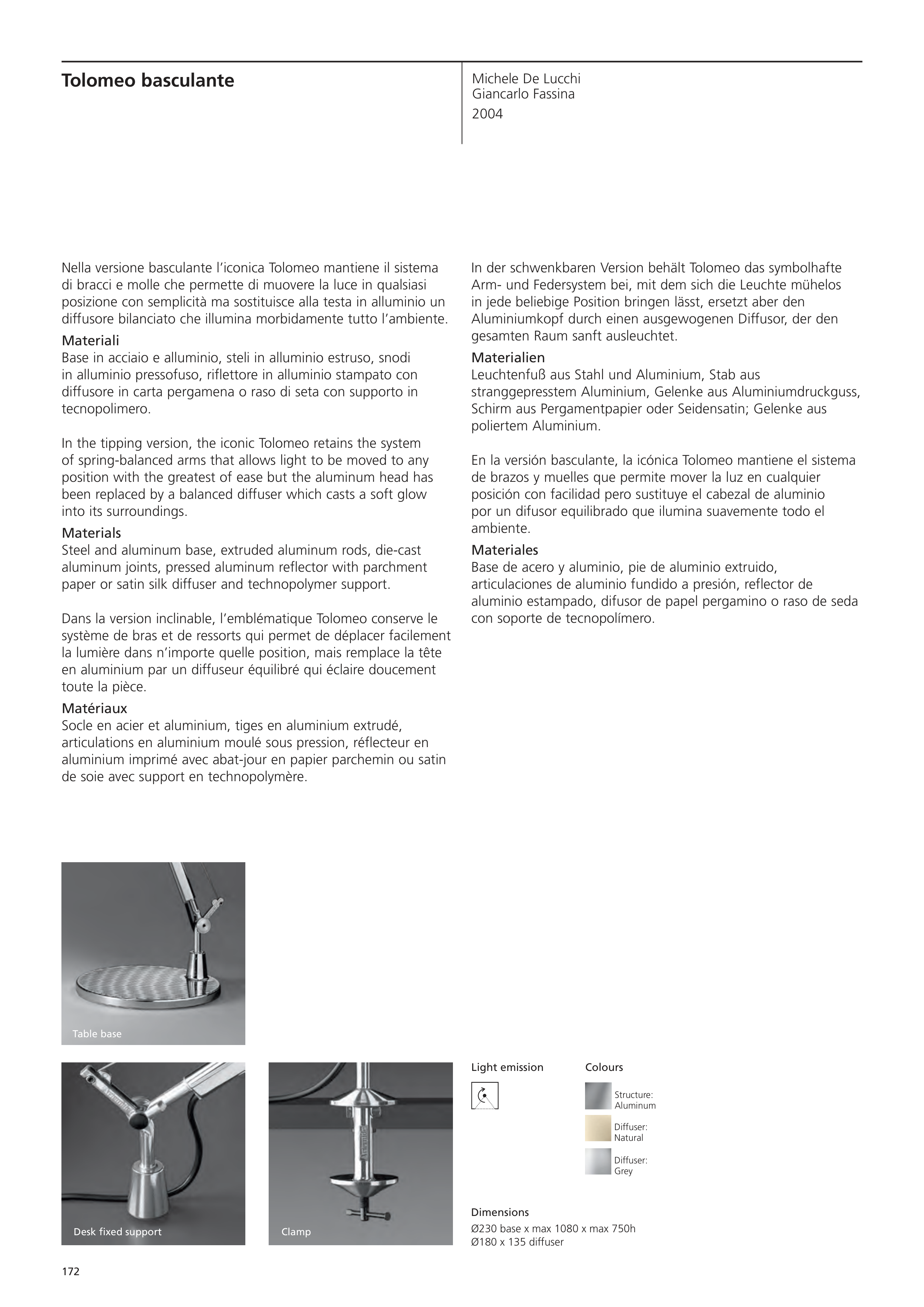 Dans la version inclinable, l’emblématique Tolomeo conserve le