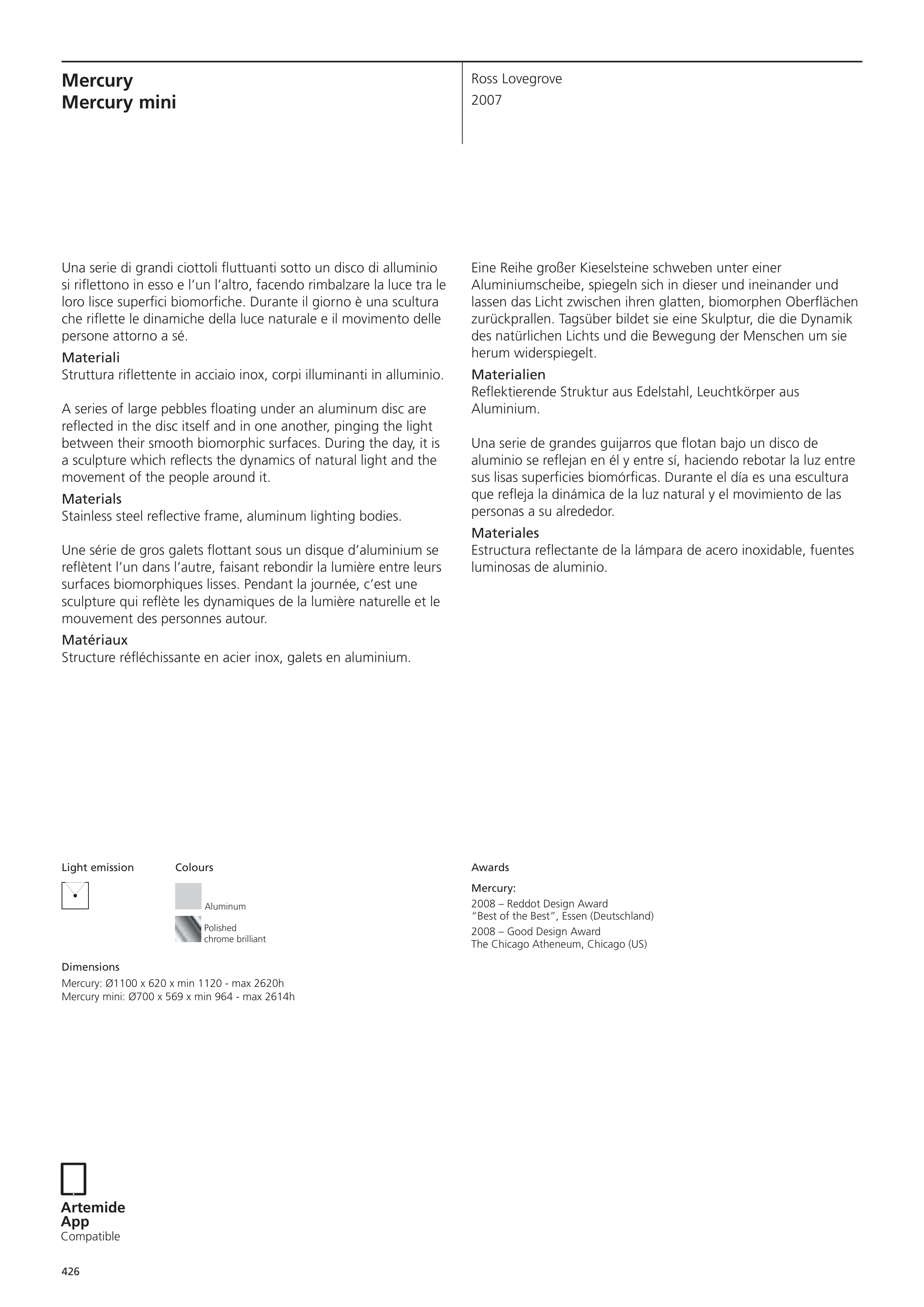 Mercury mini: Ø700 x 569 x min 964 - max 2614h