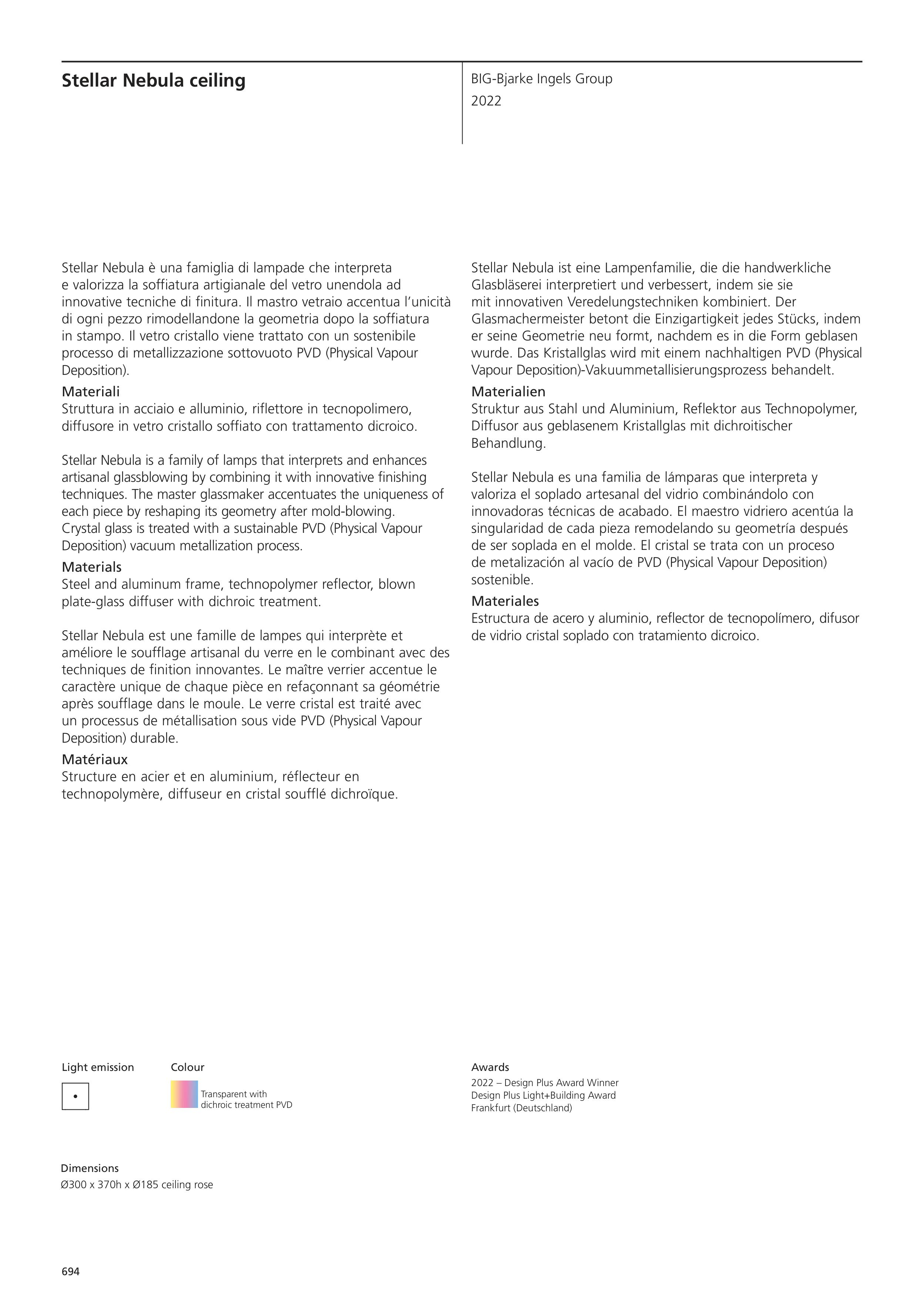 technopolymère, diffuseur en cristal soufflé dichroïque.