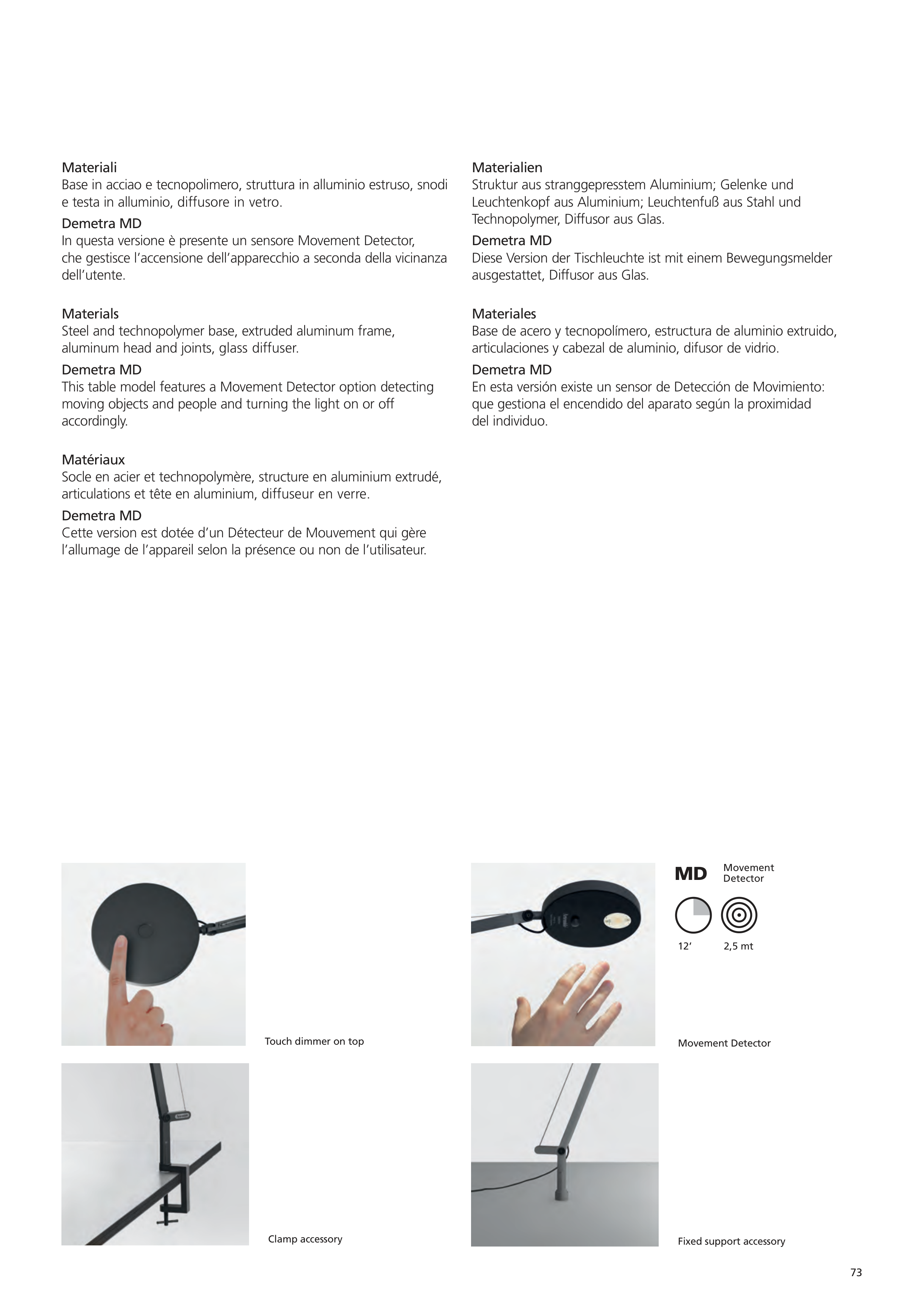 articulations et tête en aluminium, diffuseur en verre.