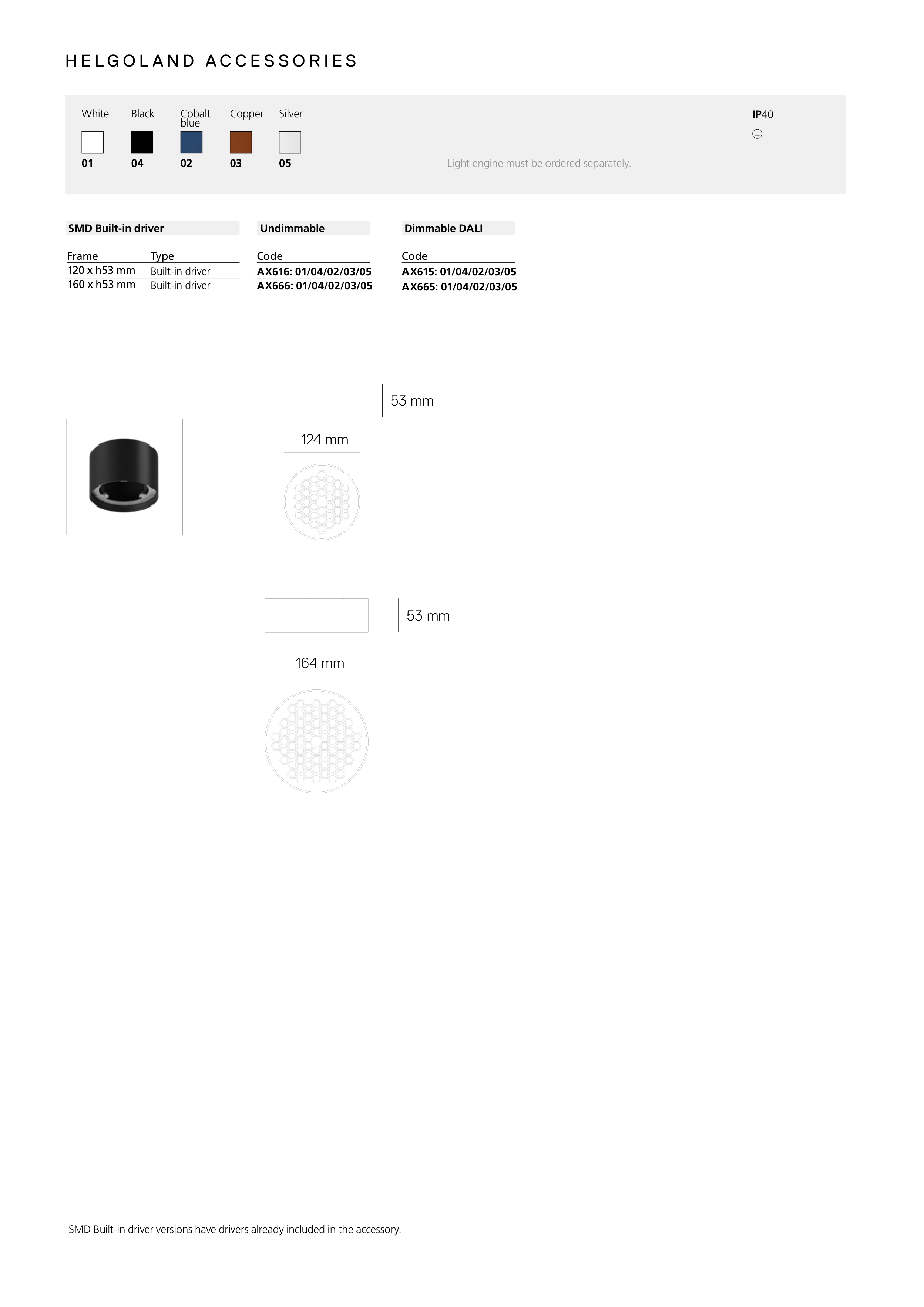 Light engine must be ordered separately.
