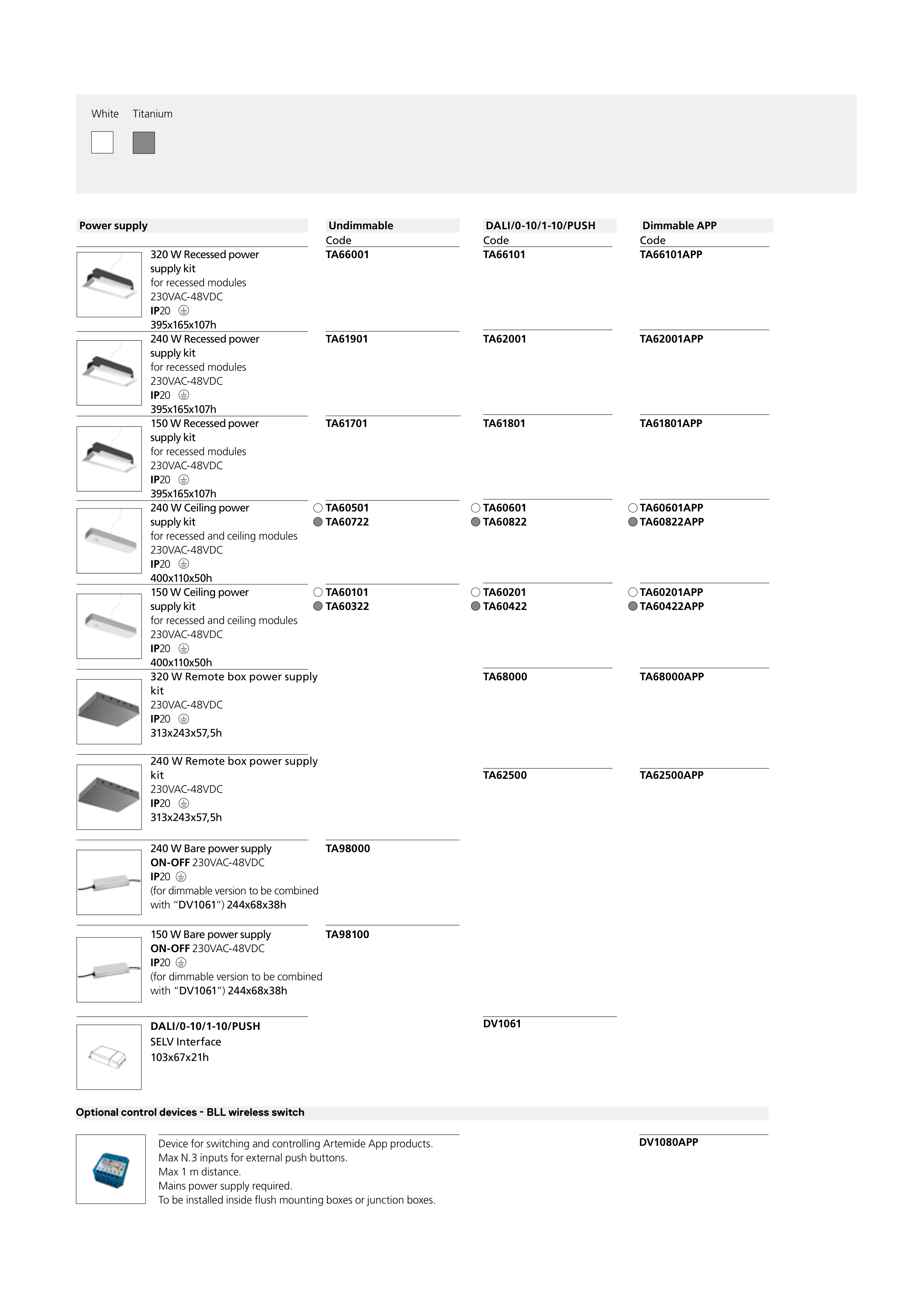 Device for switching and controlling Artemide App products.