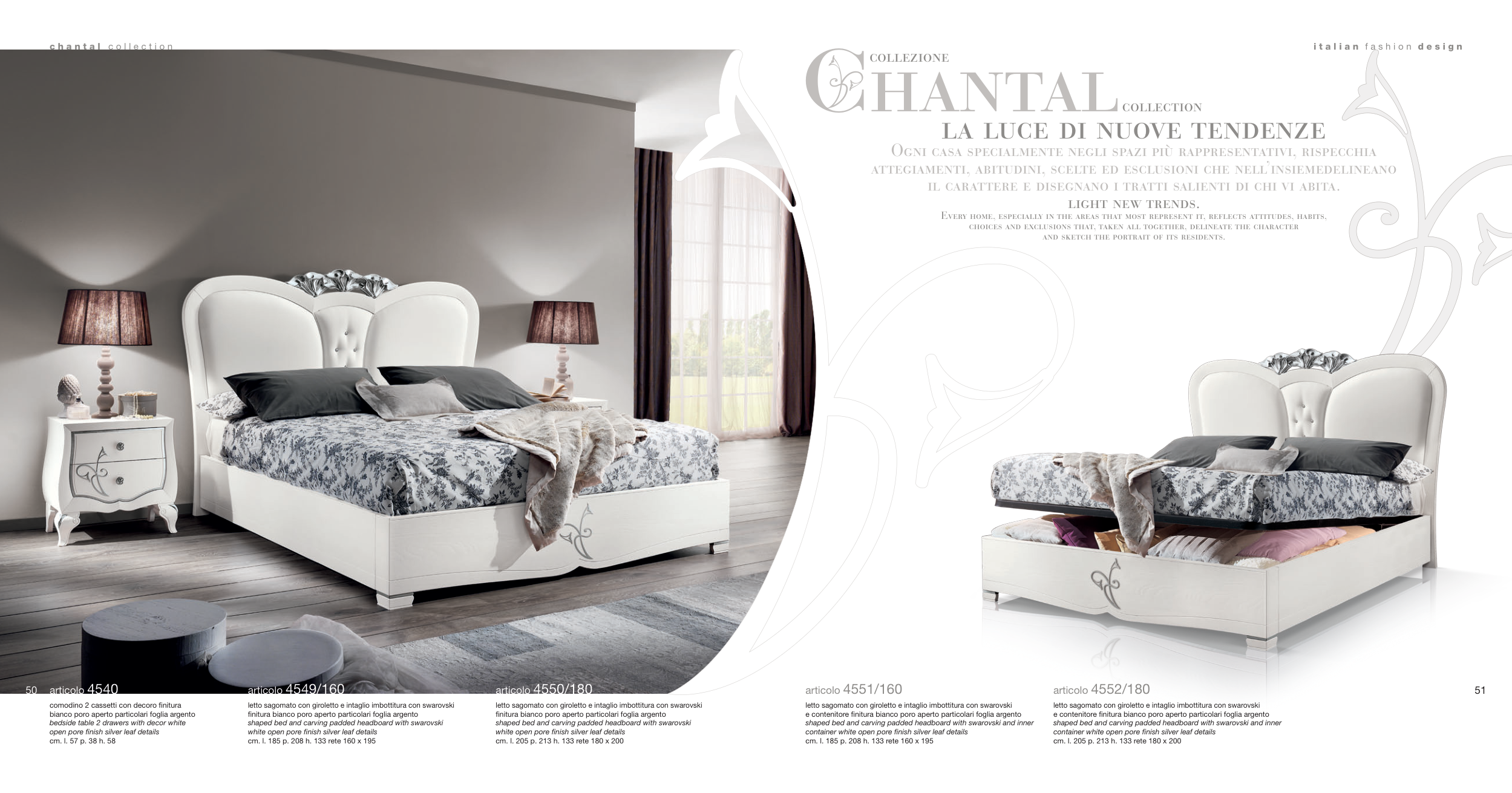 letto sagomato con giroletto e intaglio imbottitura con swarovski