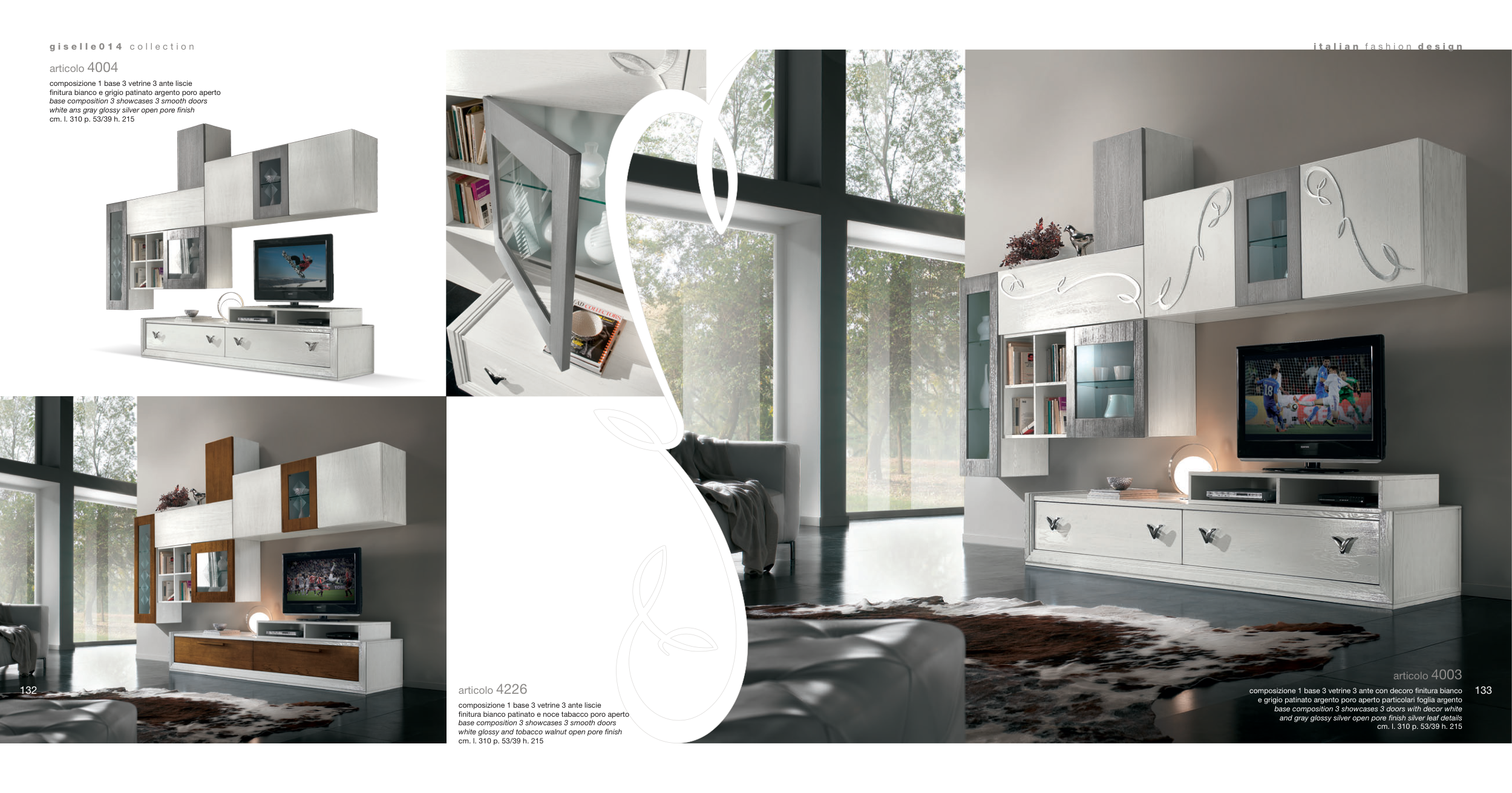 composizione 1 base 3 vetrine 3 ante con decoro finitura bianco
