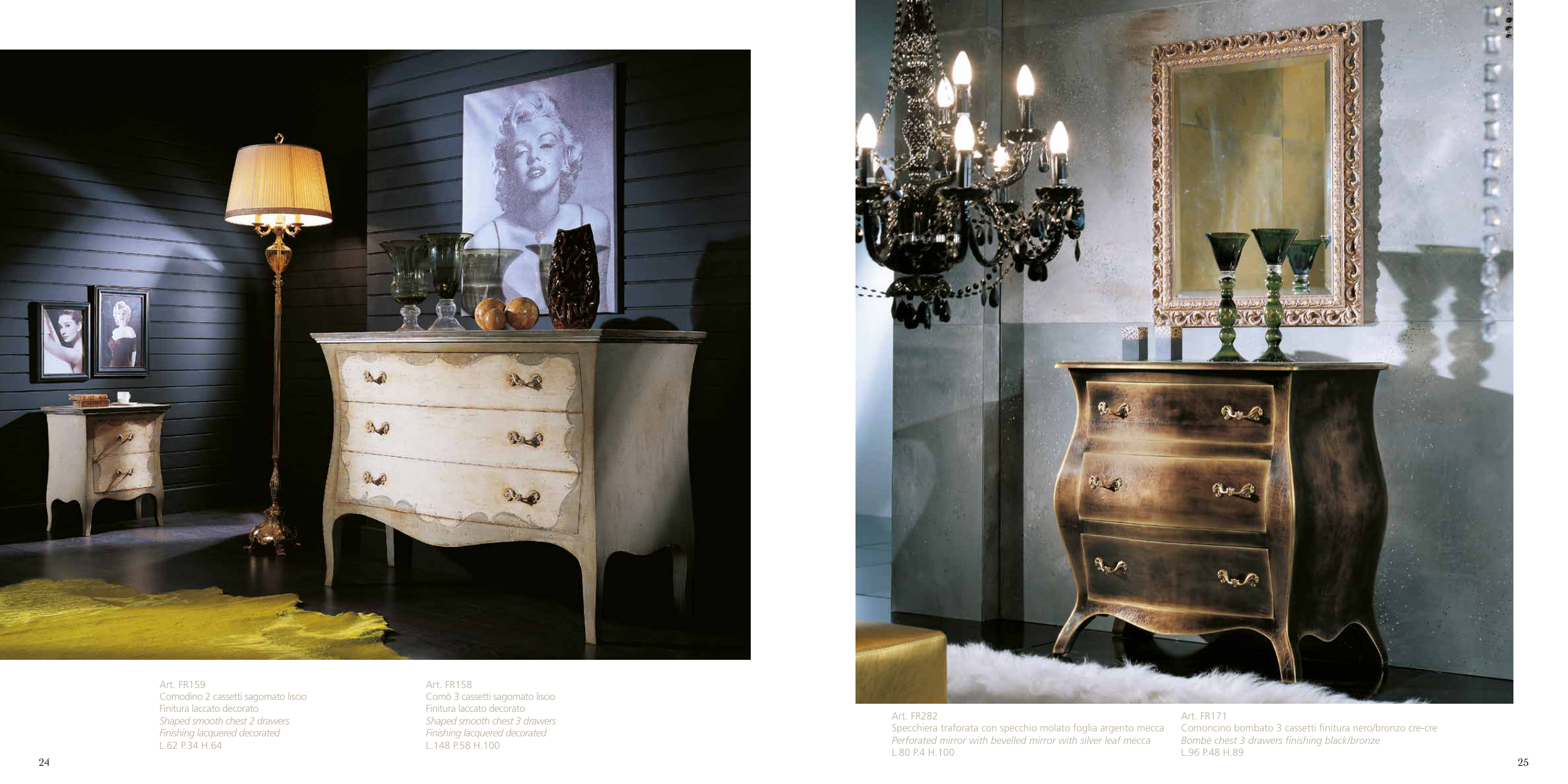 Bombè chest 3 drawers finishing black/bronze