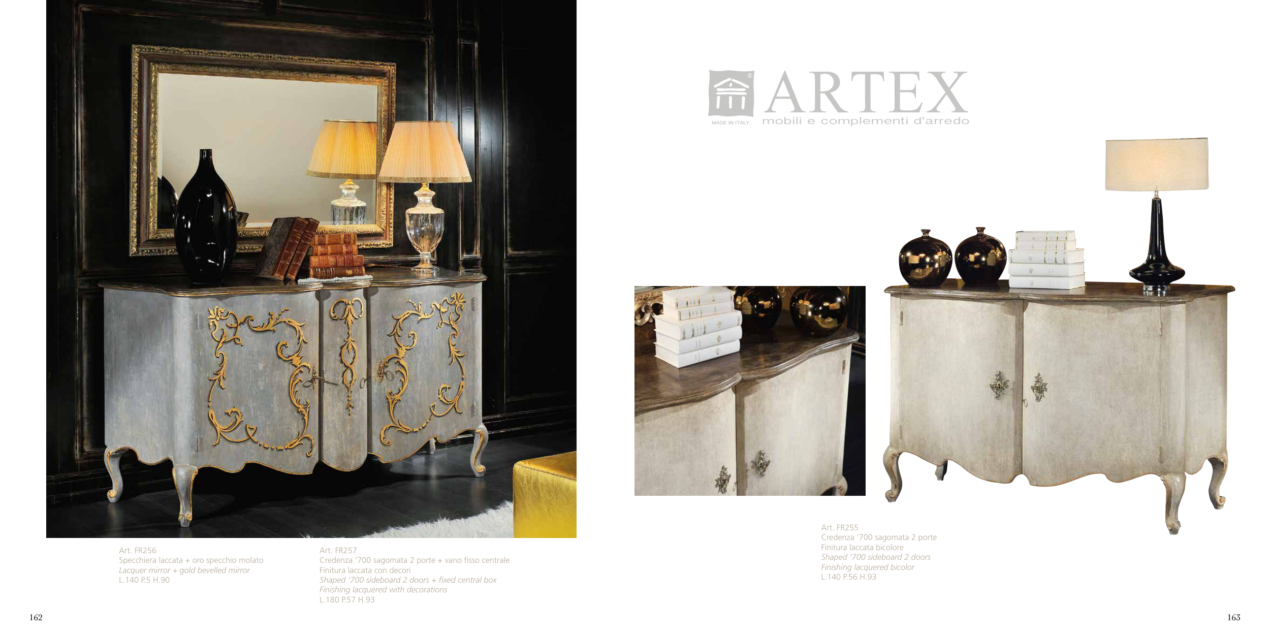 Credenza ‘700 sagomata 2 porte + vano fisso centrale