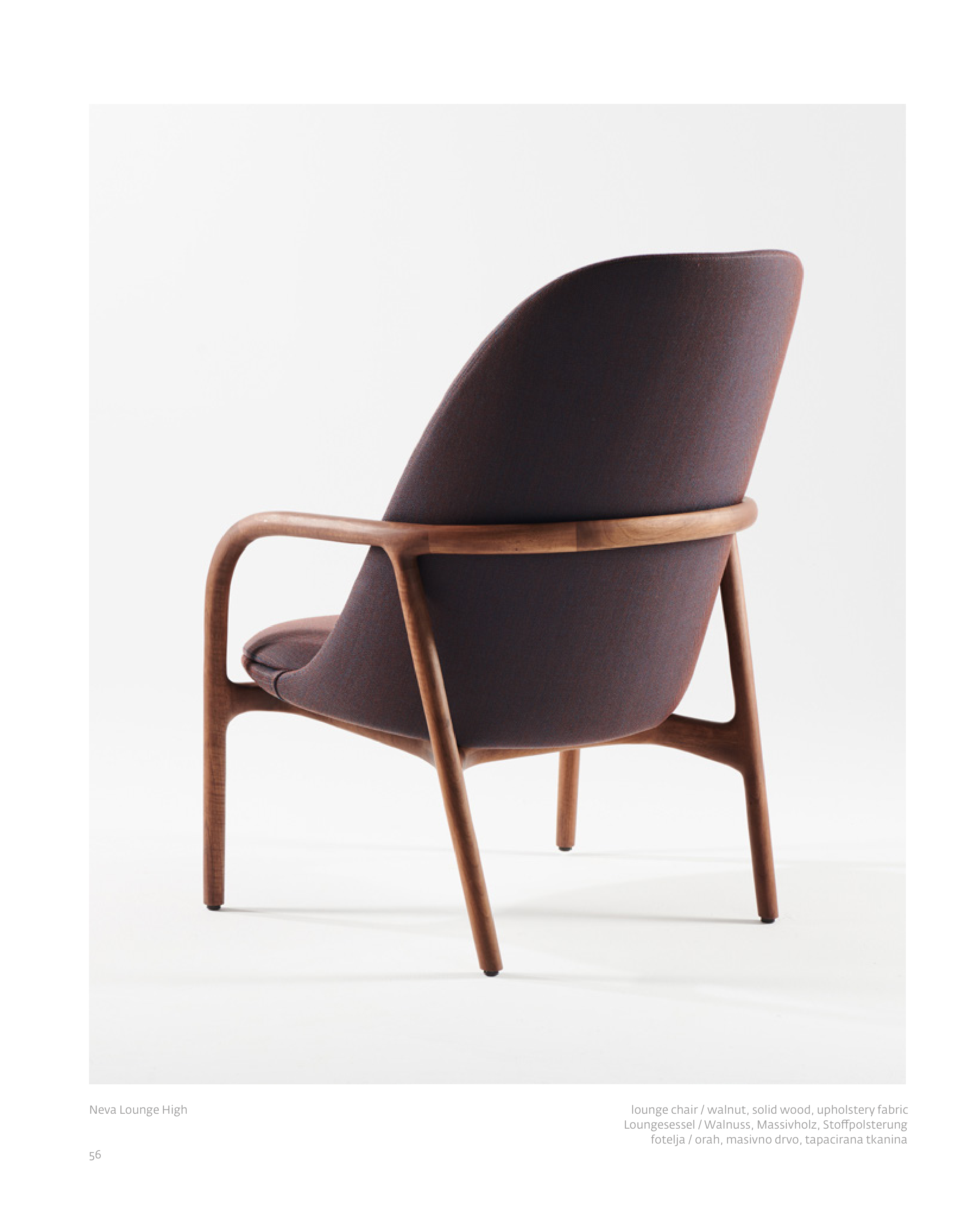 lounge chair / walnut, solid wood, upholstery fabric