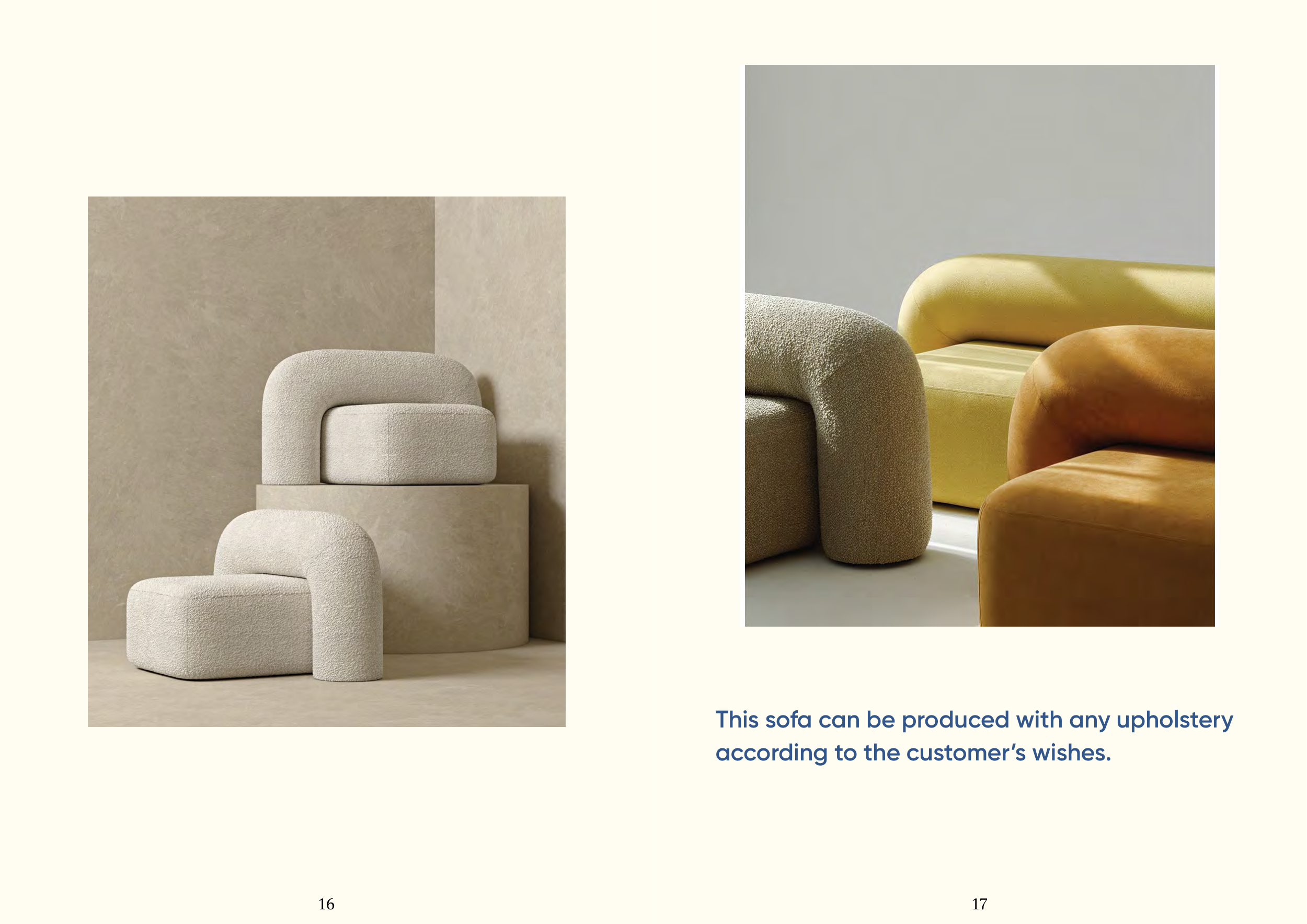 This sofa can be produced with any upholstery