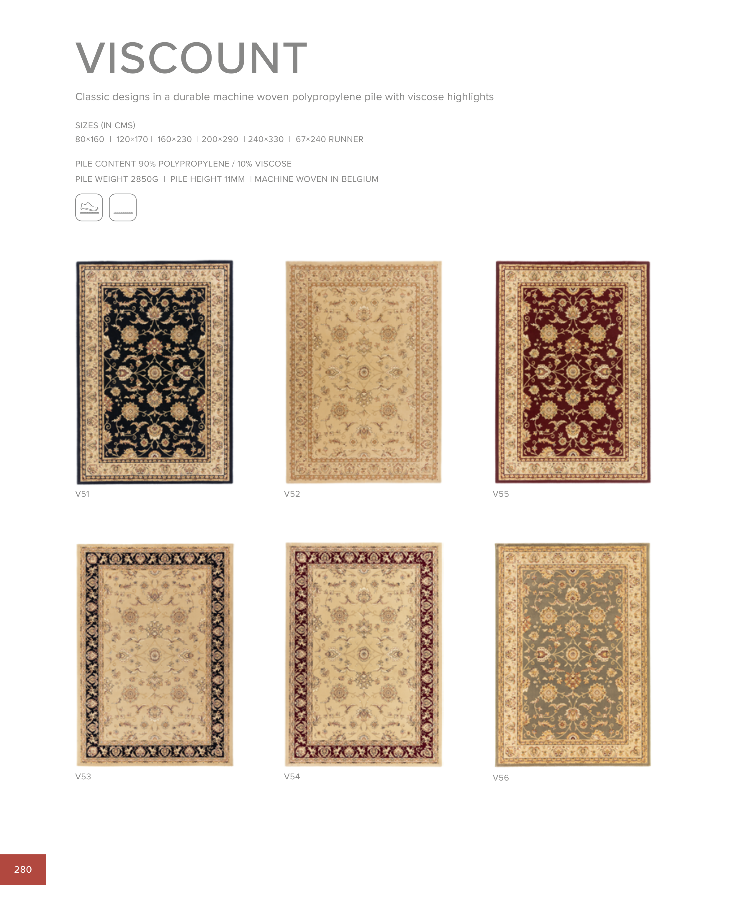 Classic designs in a durable machine woven polypropylene pile with viscose highlights