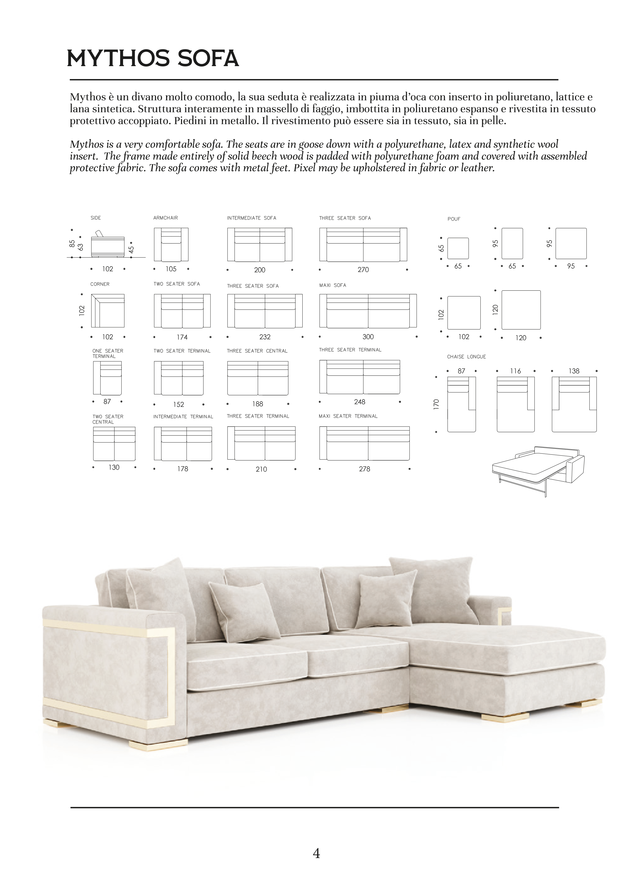 Mythos is a very comfortable sofa. The seats are in goose down with a polyurethane, latex and synthetic wool