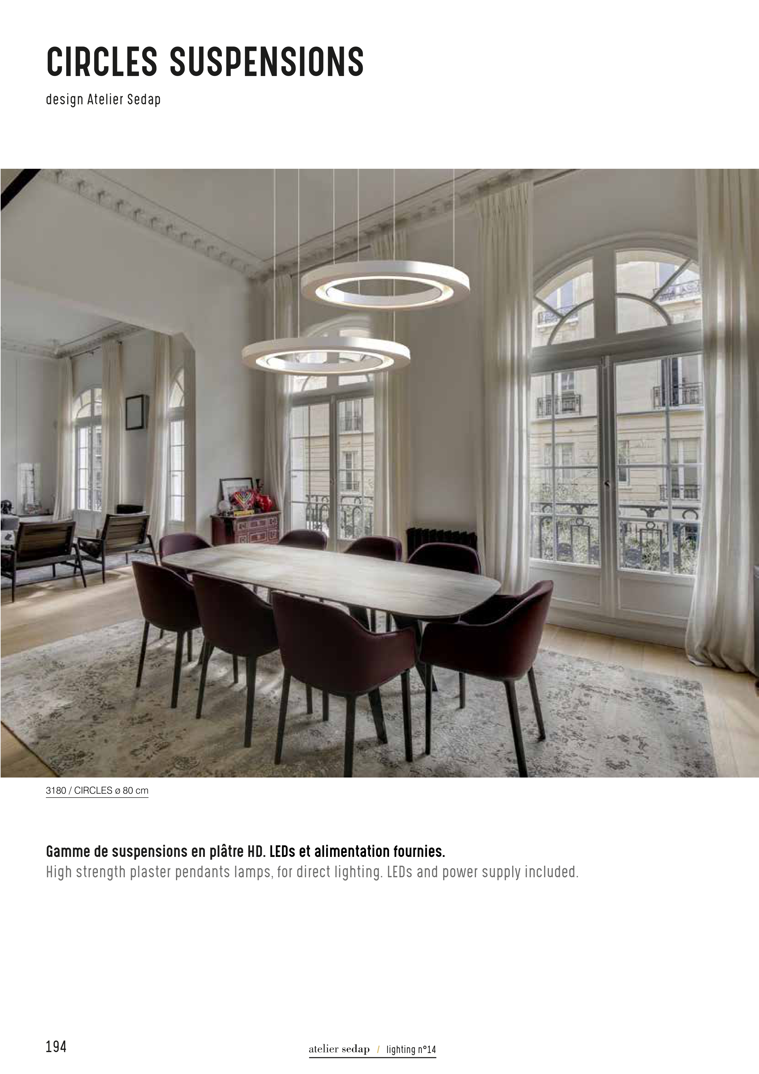 Gamme de suspensions en plâtre HD. LEDs et alimentation fournies.
