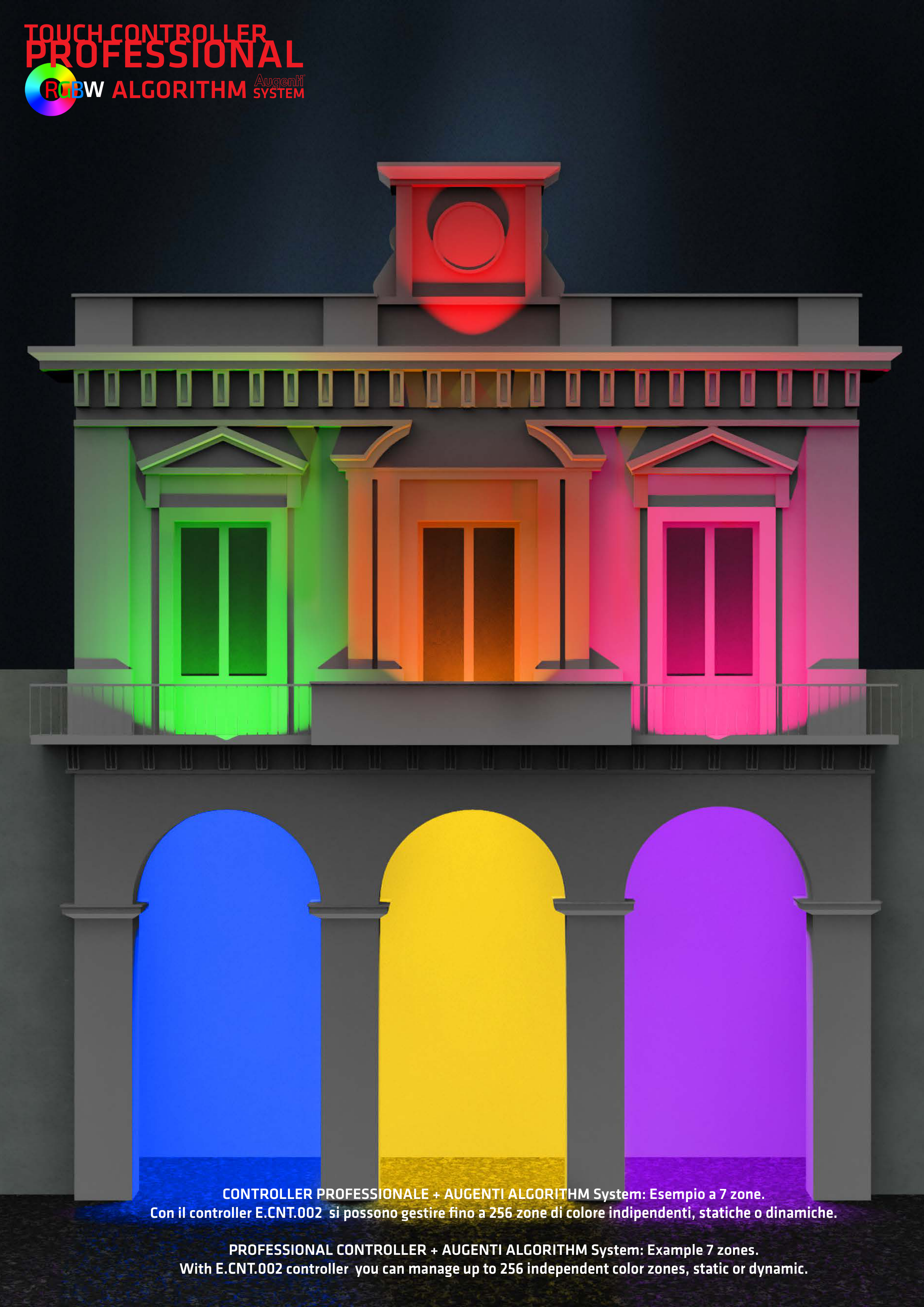 With E.CNT.002 controller you can manage up to 256 independent color zones, static or dynamic.