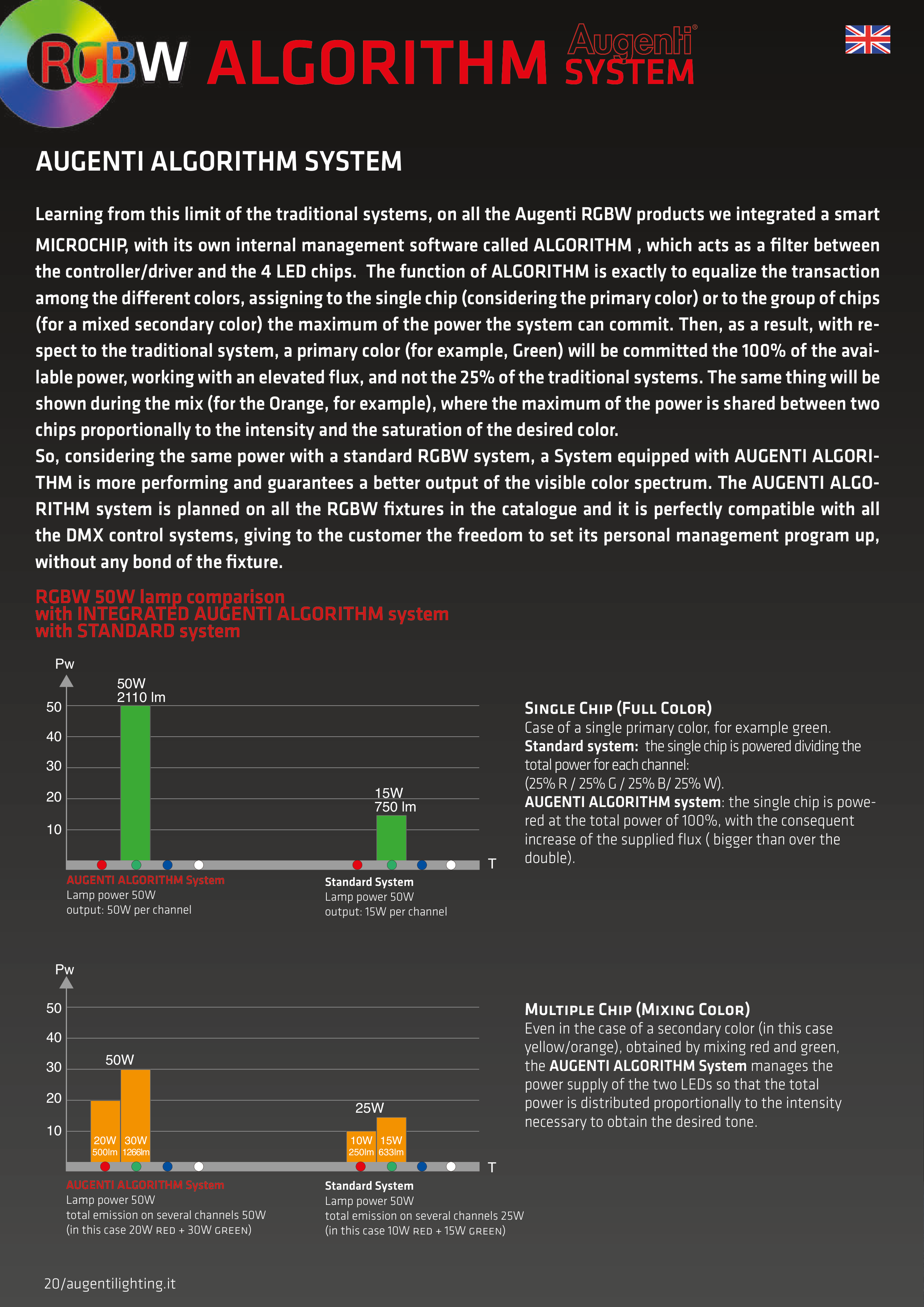 So, considering the same power with a standard RGBW system, a System equipped with AUGENTI ALGORI-