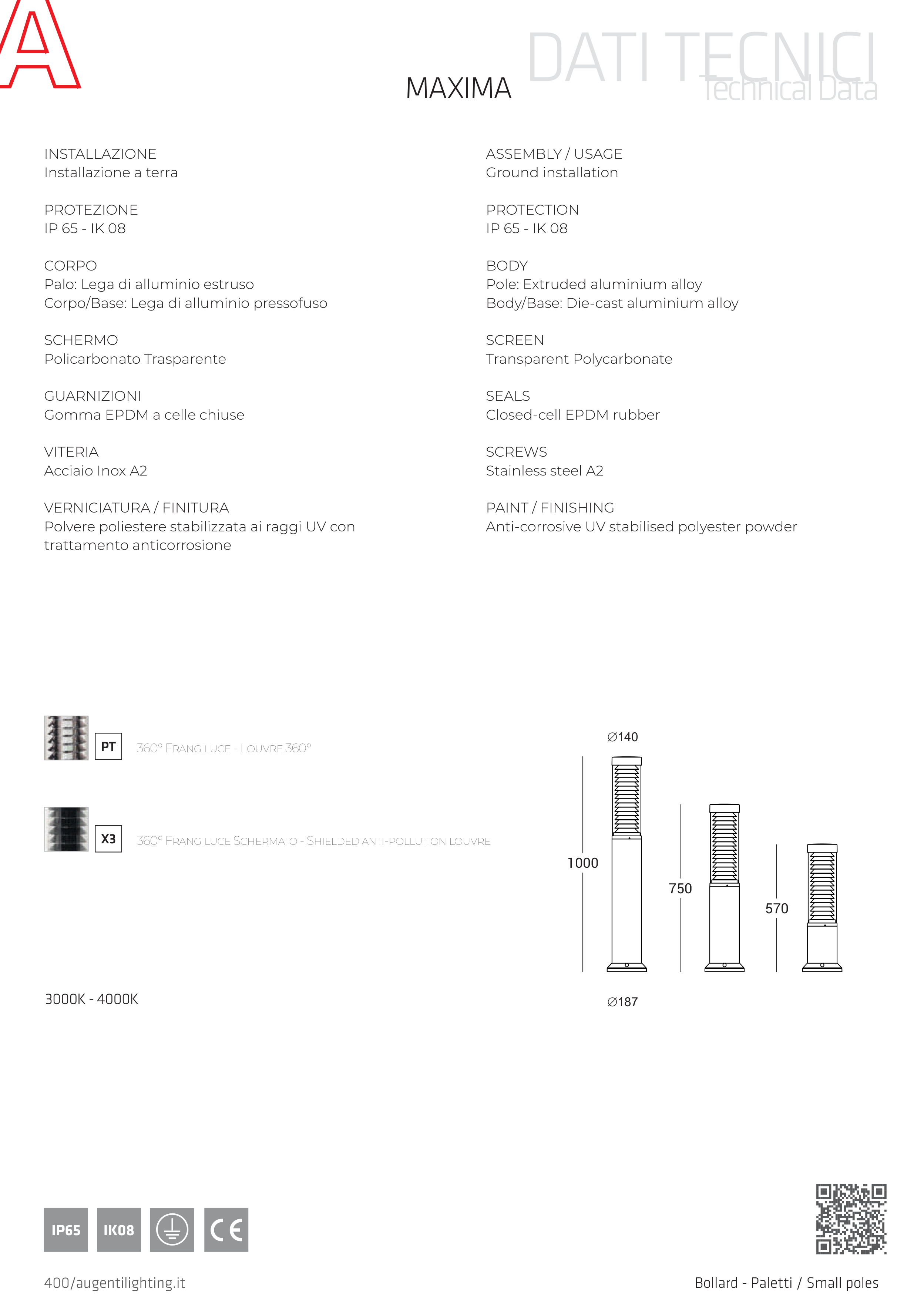 Bollard H.570 con frangiluce / Bollard H.570 with louvres