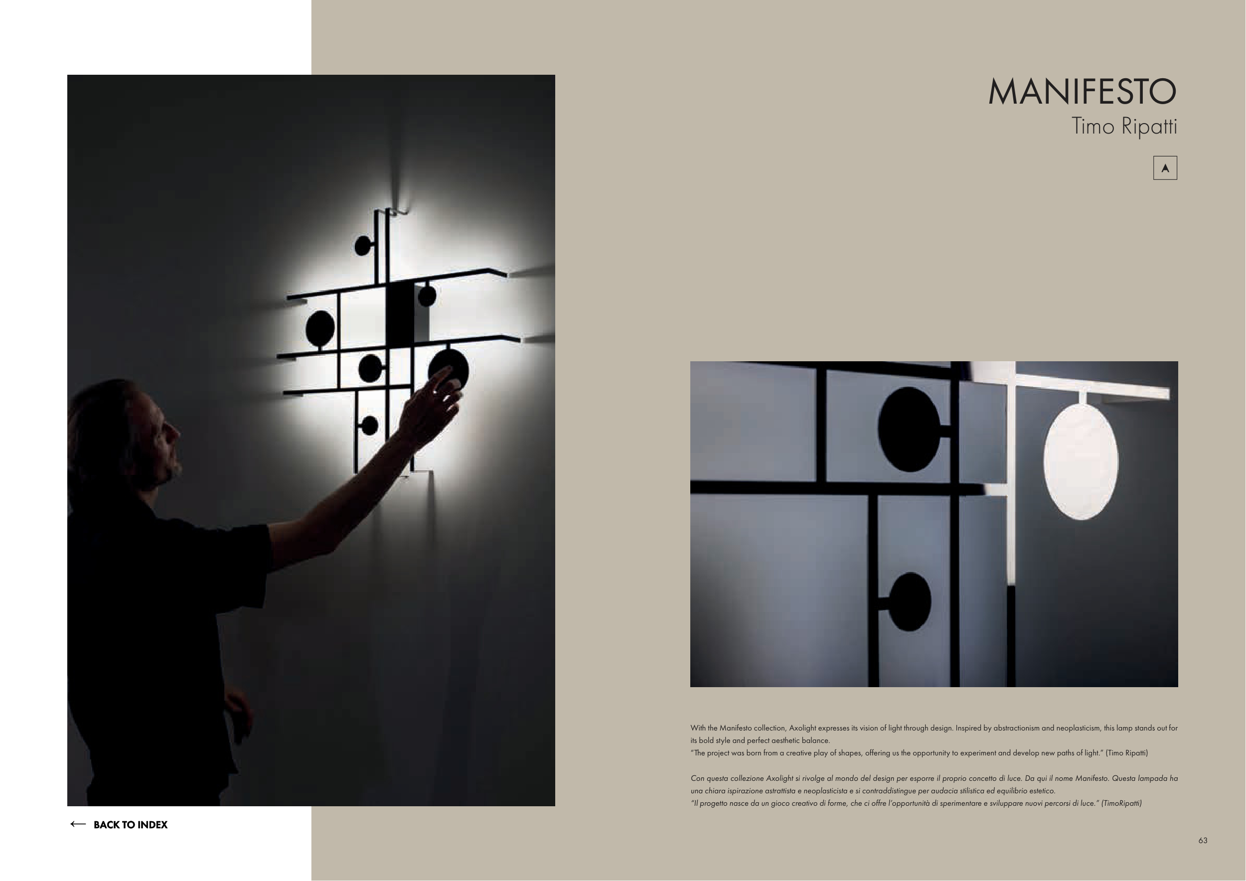 “Il progetto nasce da un gioco creativo di forme, che ci offre l’opportunità di sperimentare e sviluppare nuovi percorsi di luce.” (TimoRipatti)