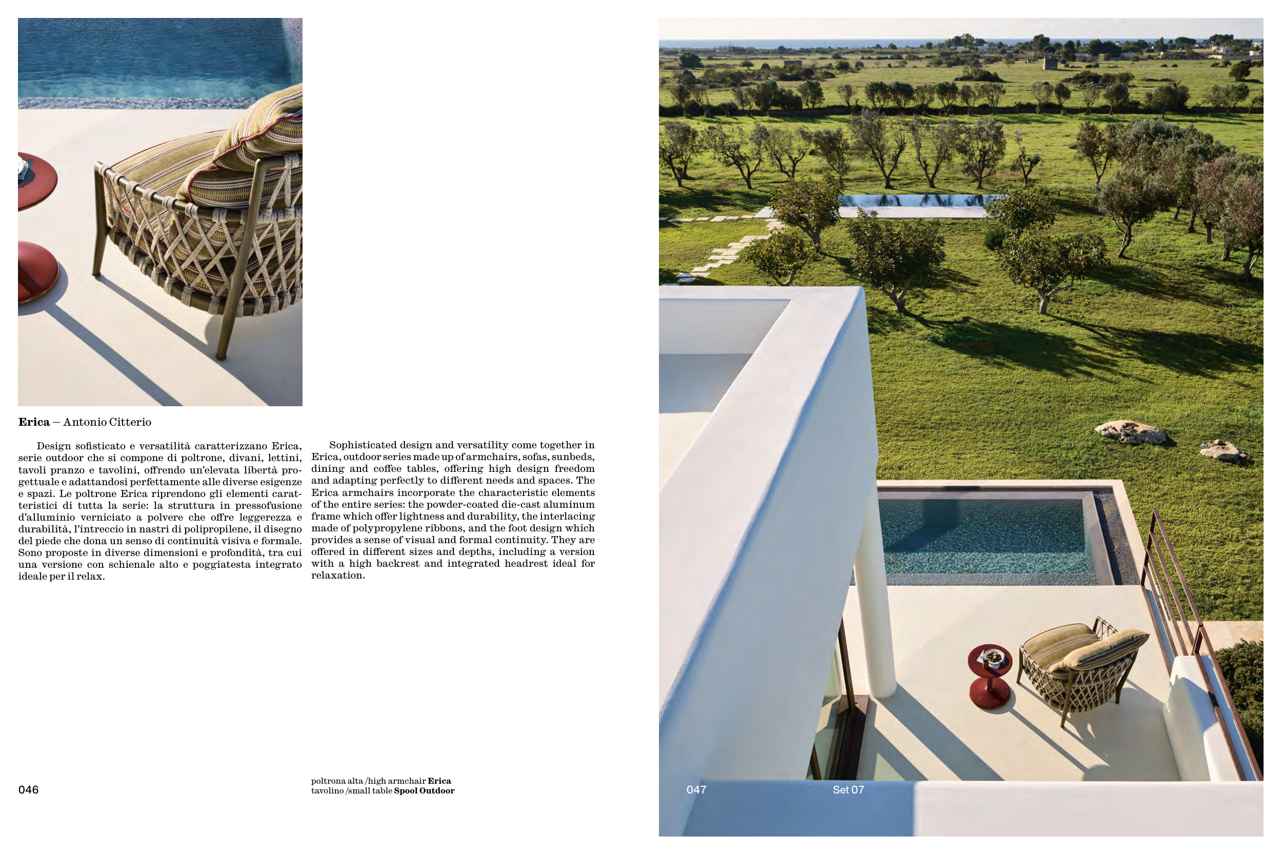 Erica, outdoor series made up of armchairs, sofas, sunbeds,