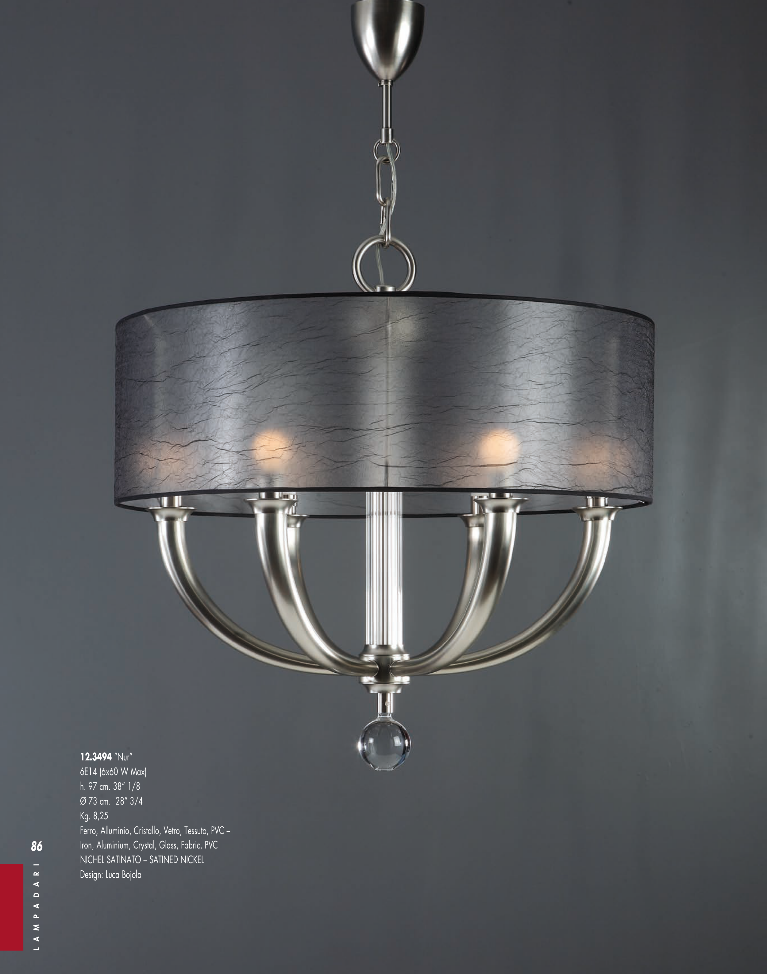 Iron, Aluminium, Crystal, Glass, Fabric, PVC