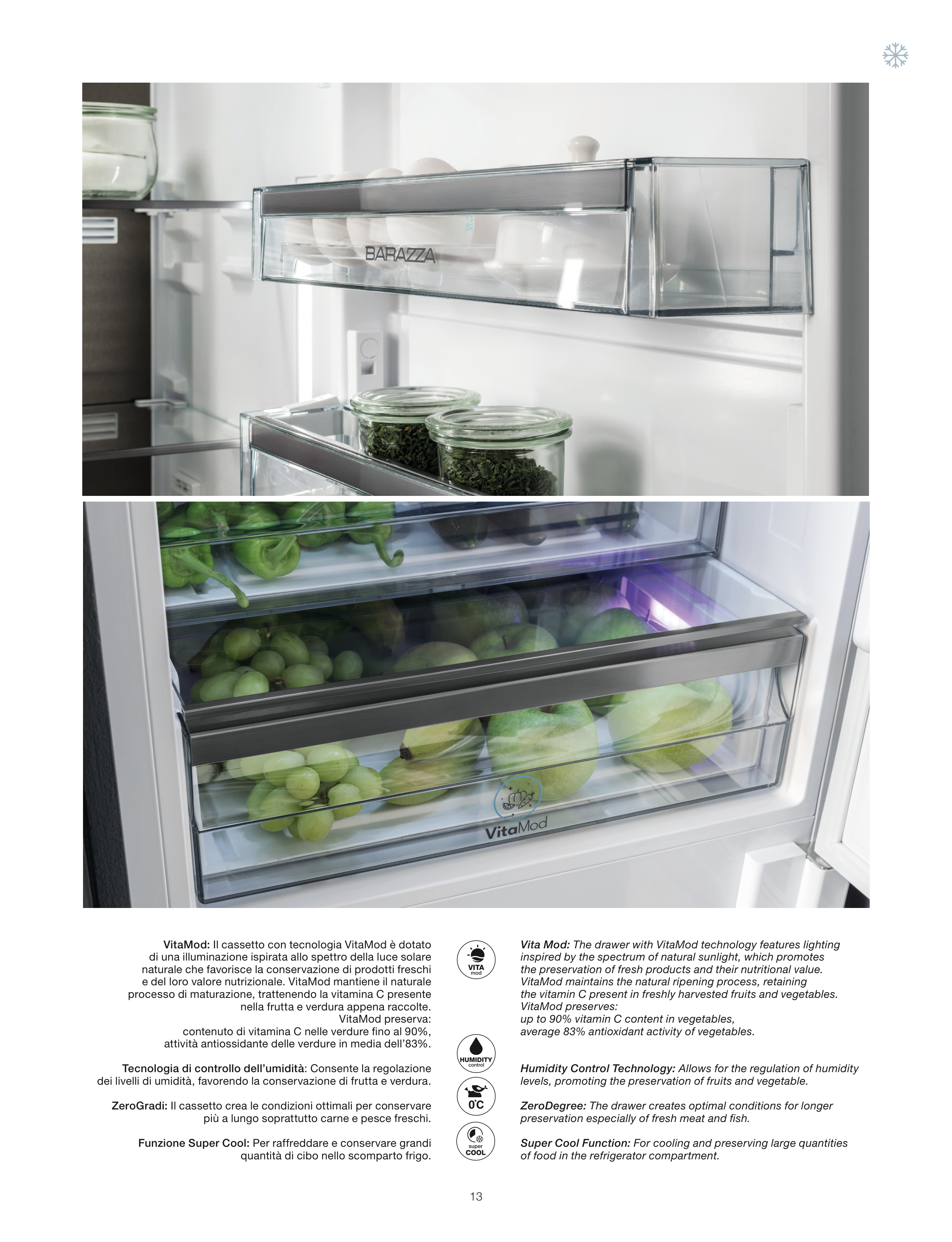 dei livelli di umidità, favorendo la conservazione di frutta e verdura.