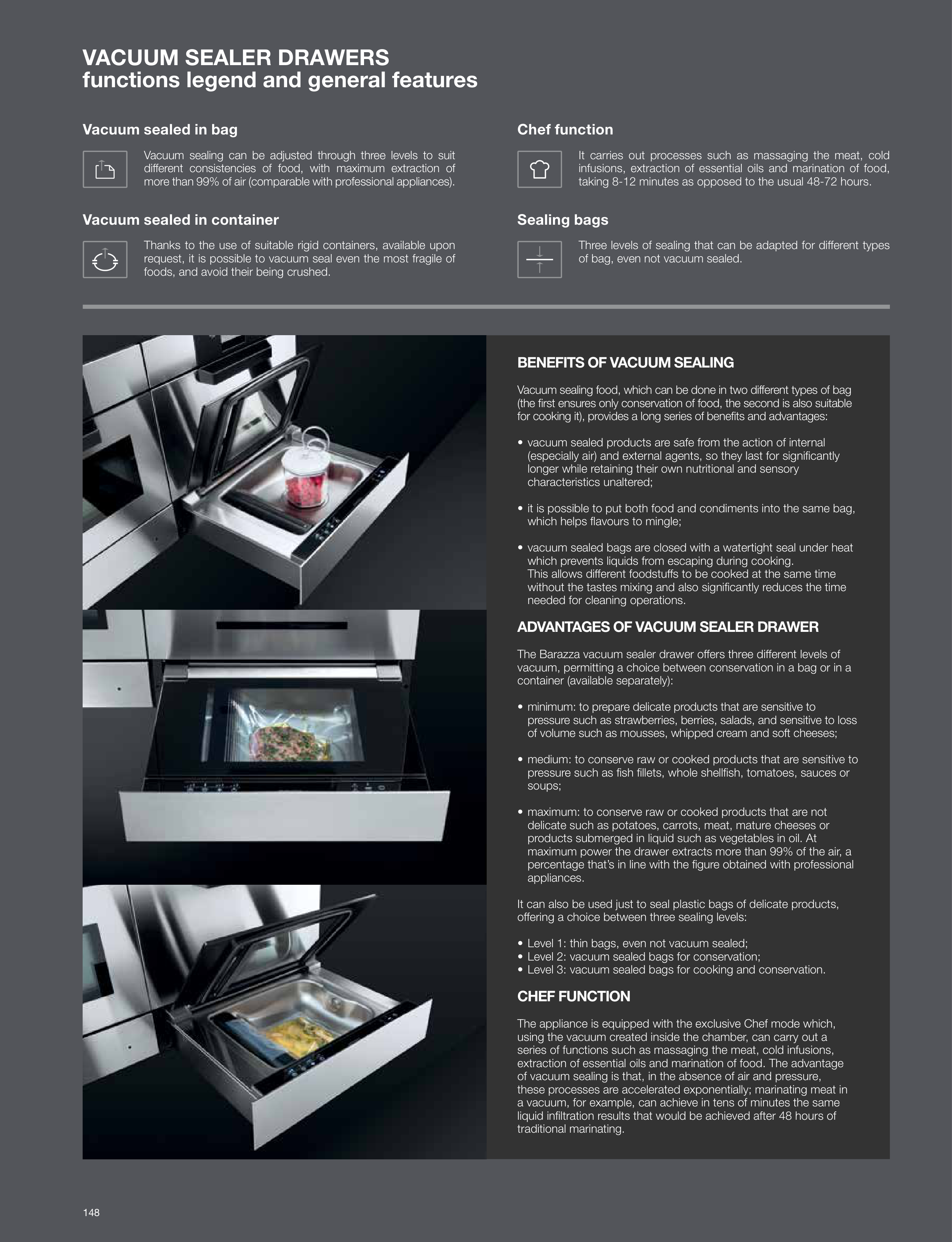The Barazza vacuum sealer drawer offers three different levels of