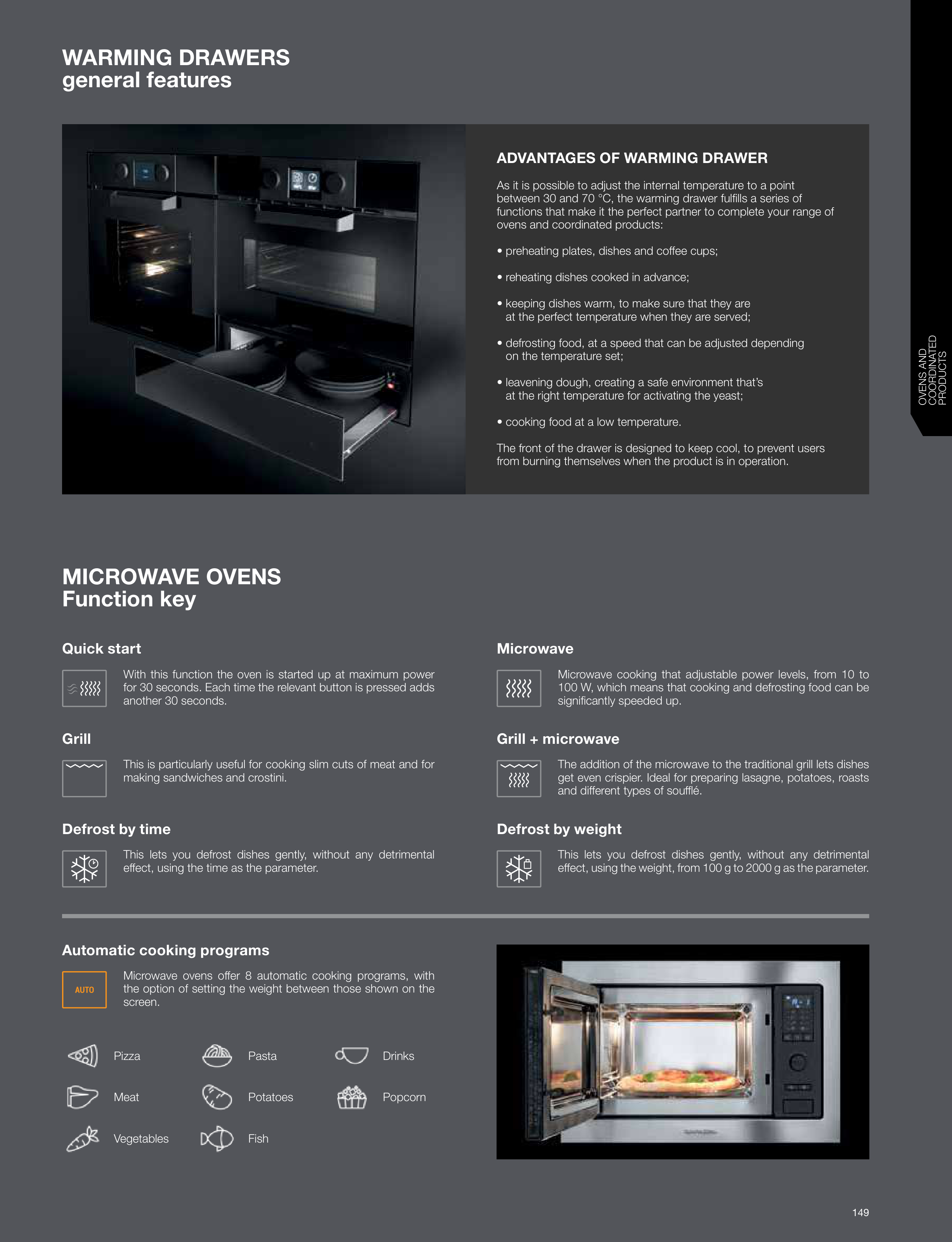 Microwave ovens offer 8 automatic cooking programs, with