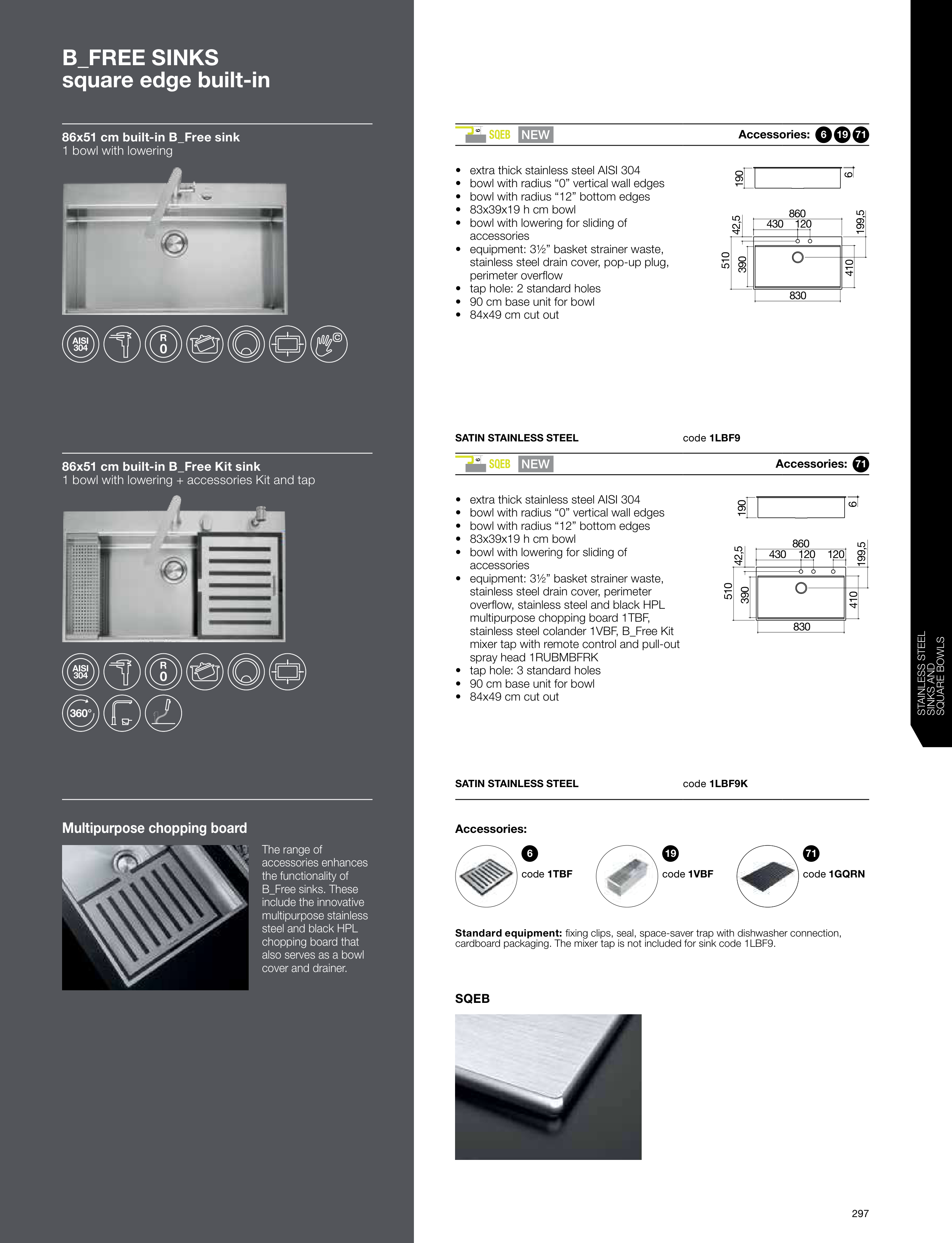 86x51 cm built-in B_Free Kit sink