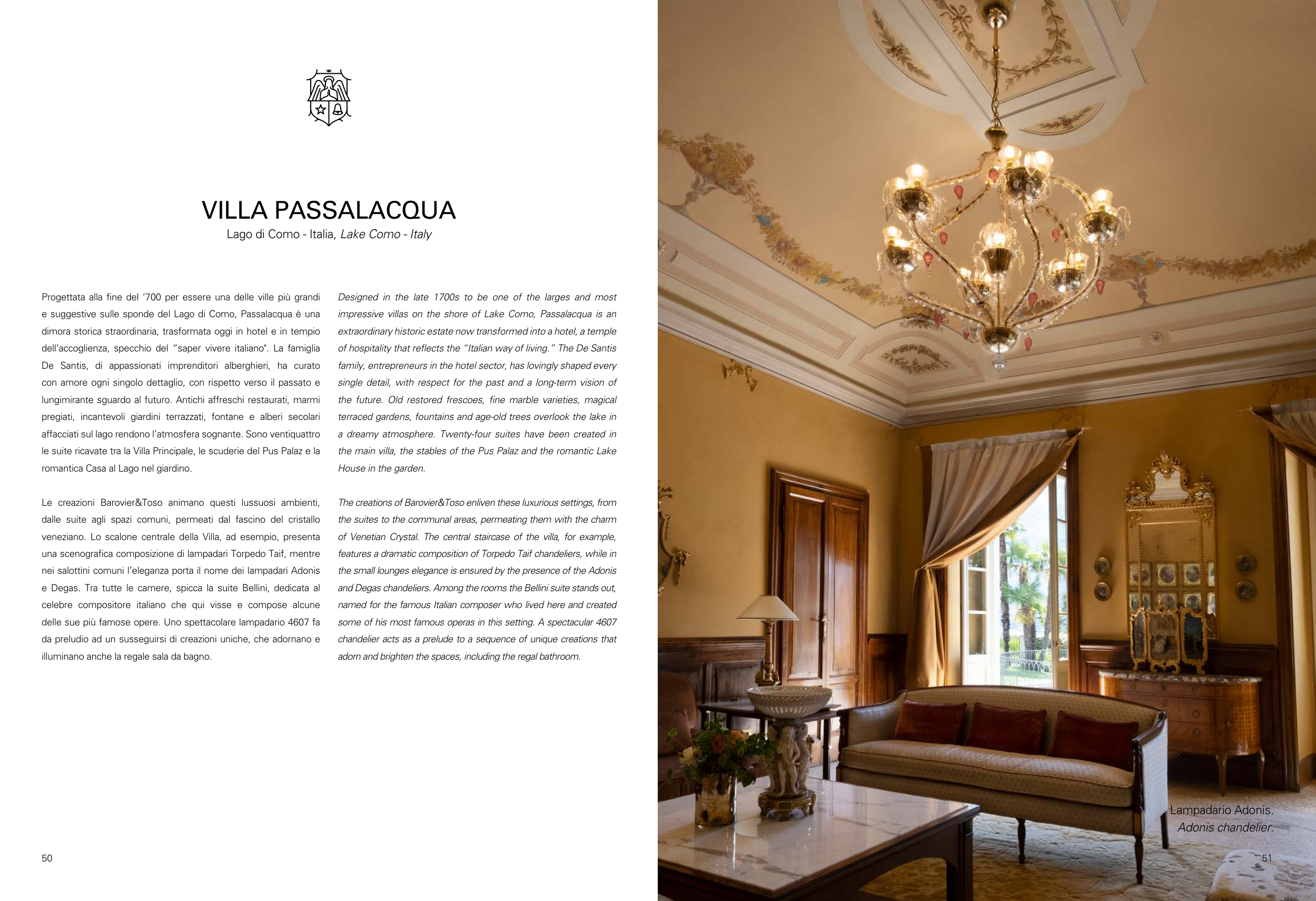 The creations of Barovier&Toso enliven these luxurious settings, from