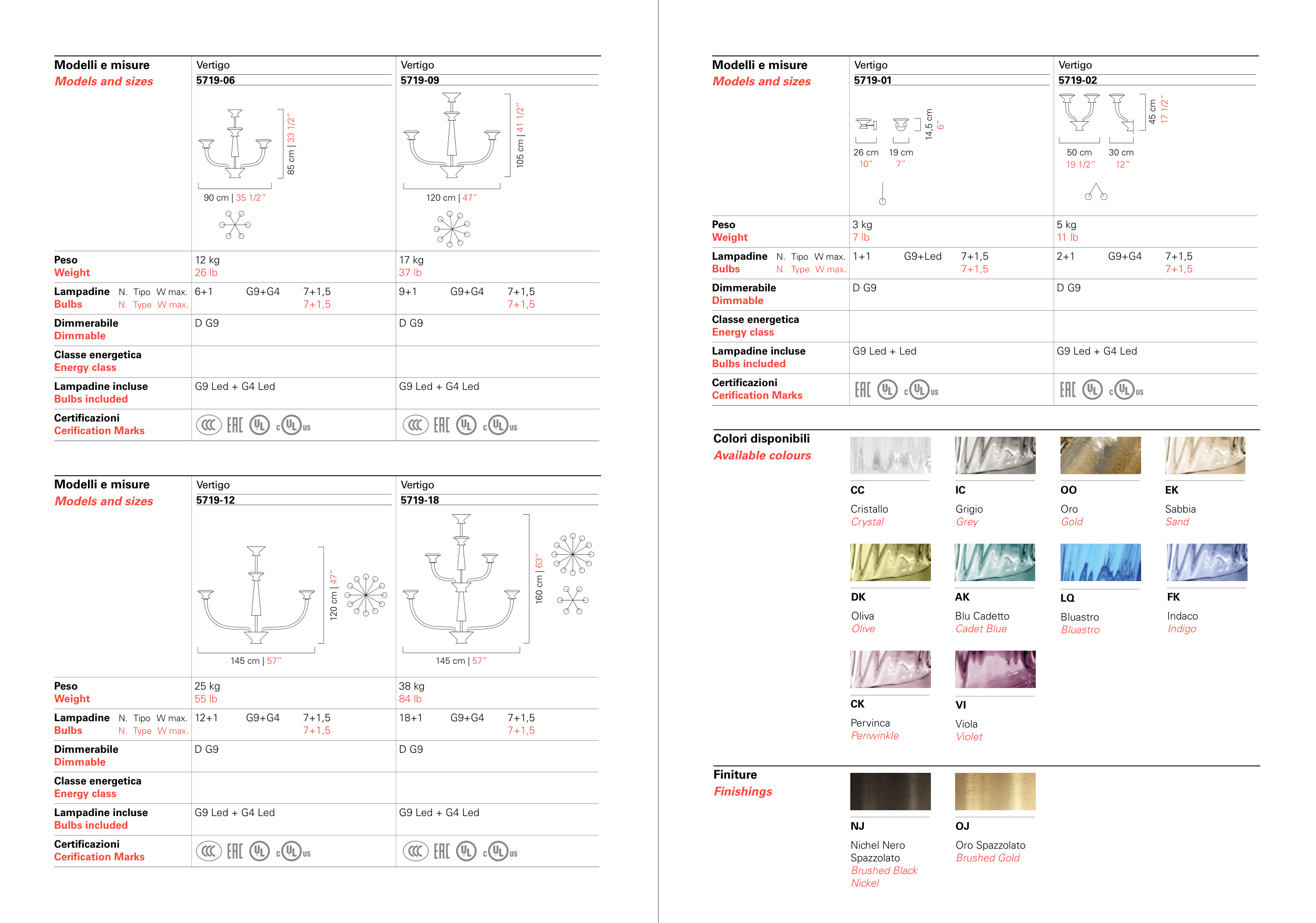 Models and sizes