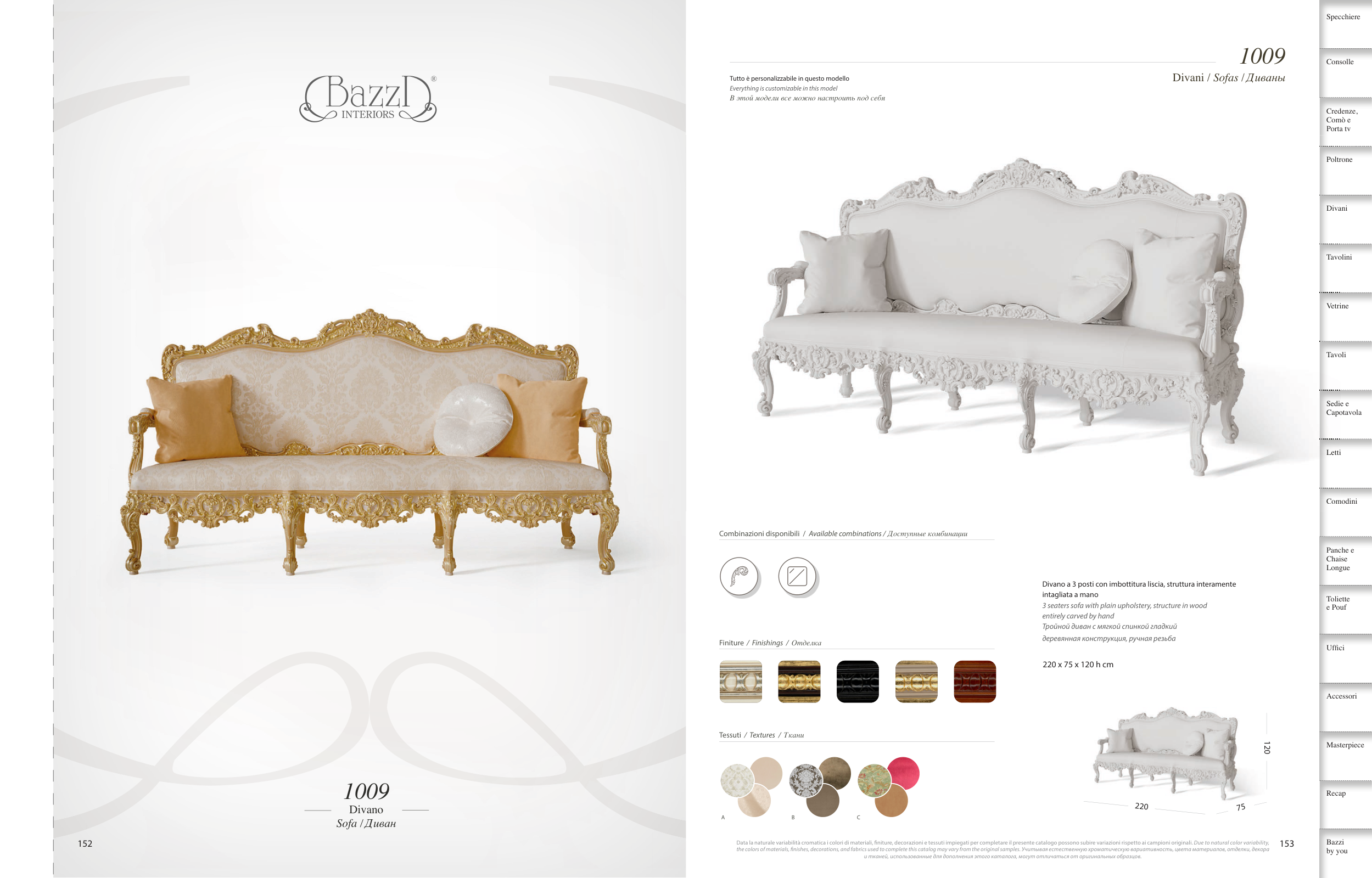 the colors of materials, fnishes, decorations, and fabrics used to complete this catalog may vary from the original samples. Учитывая естественную хроматическую вариативность, цвета материалов, отделки, декора