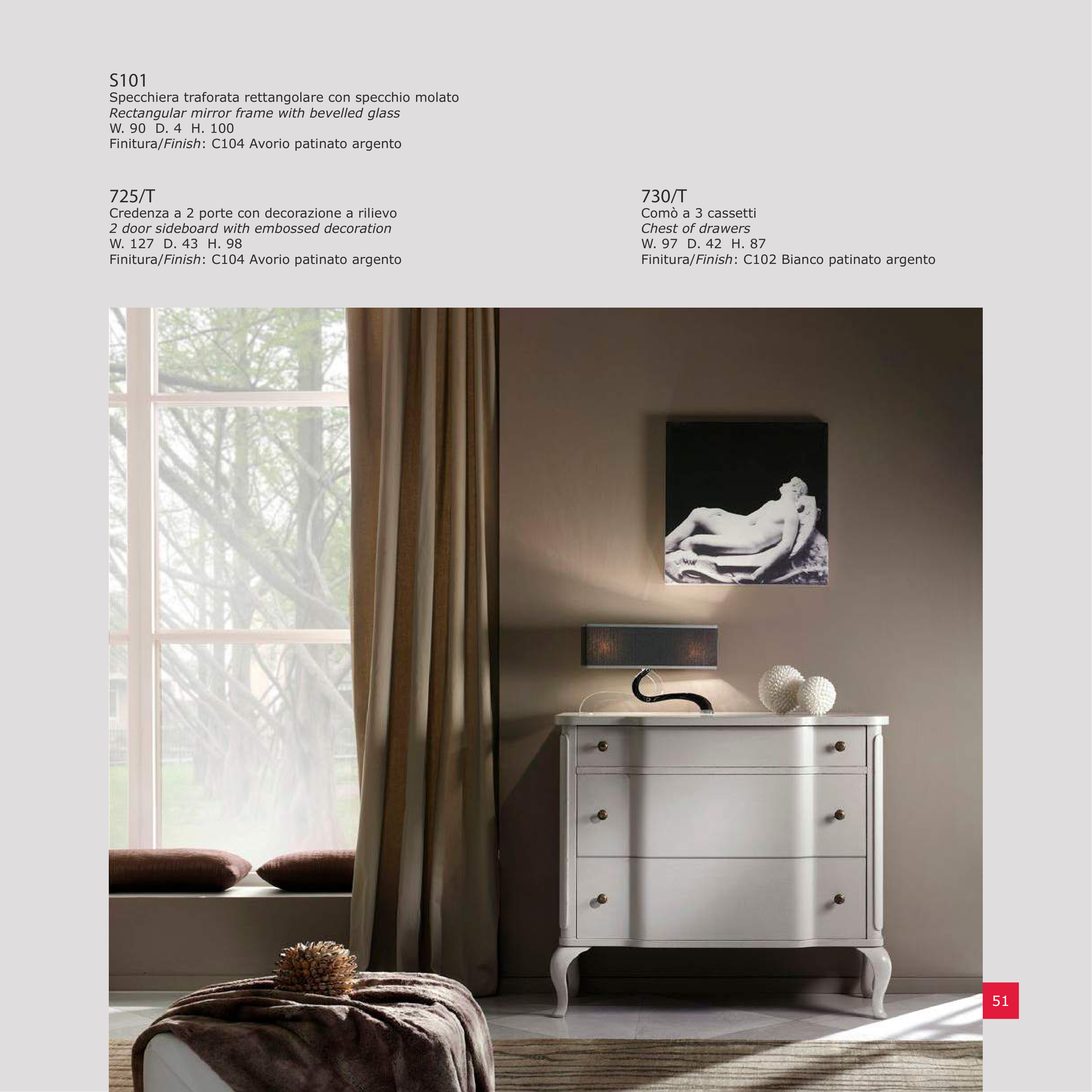 Finitura/Finish: C104 Avorio patinato argento
