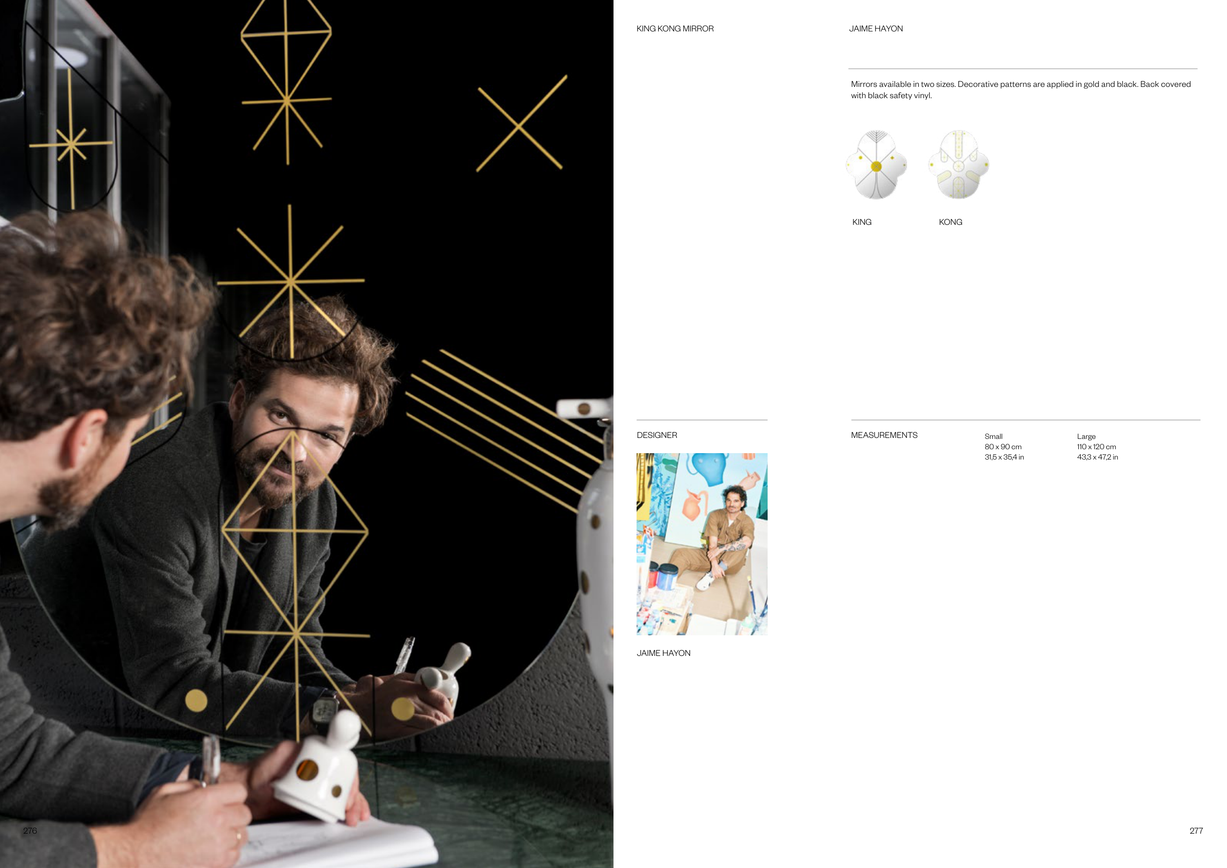 Mirrors available in two sizes. Decorative patterns are applied in gold and black. Back covered