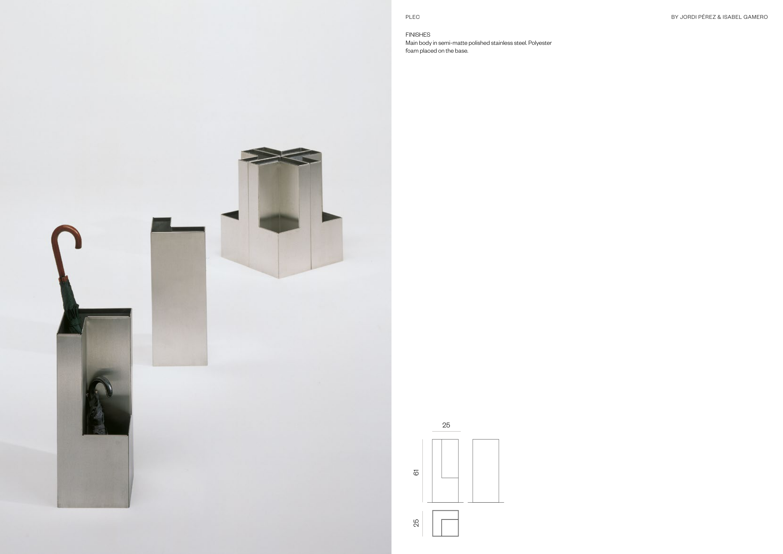 Main body in semi-matte polished stainless steel. Polyester