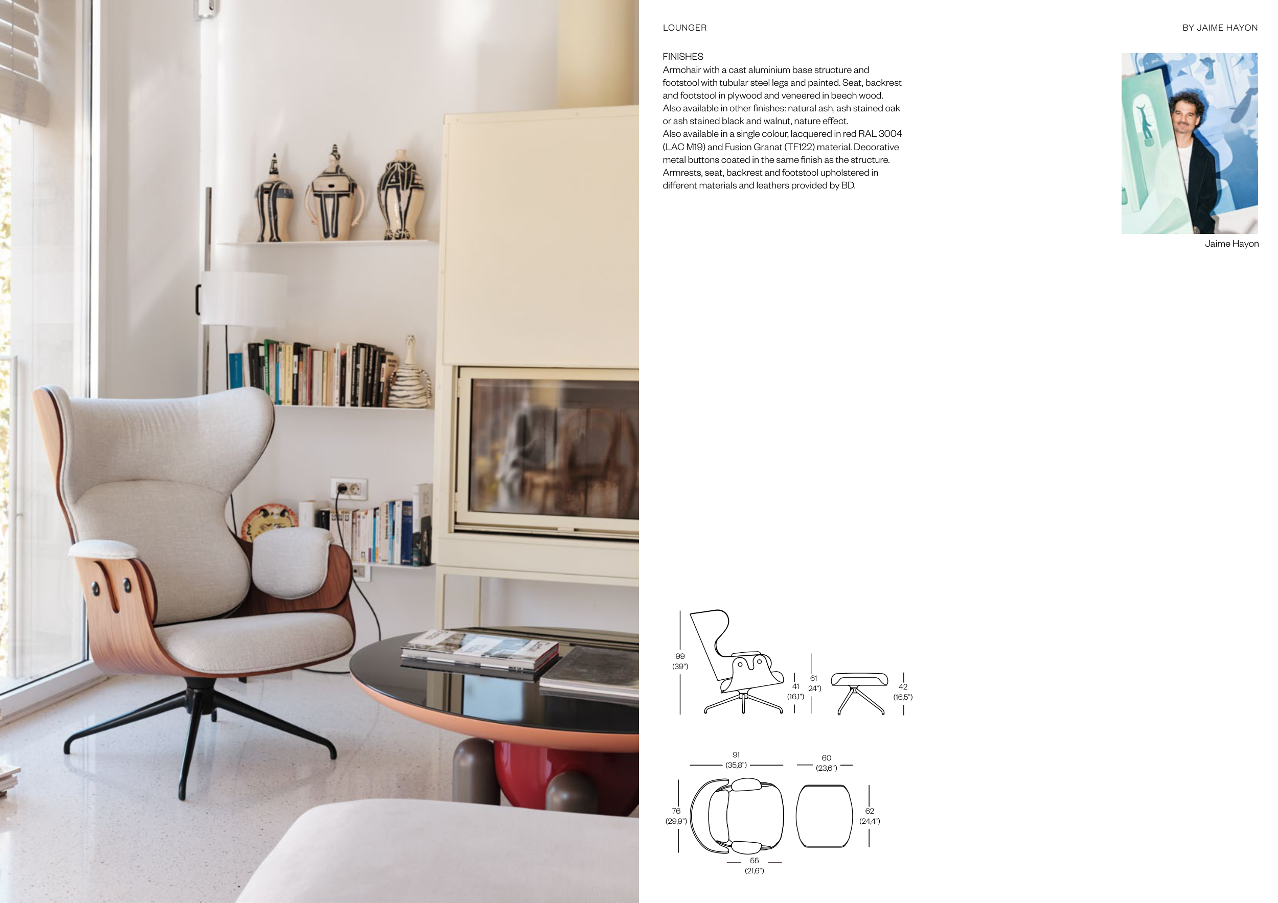 and footstool in plywood and veneered in beech wood.