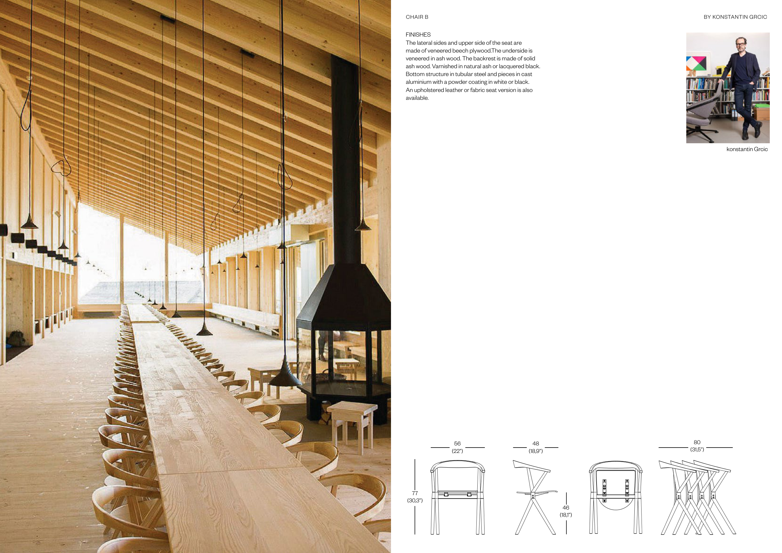 veneered in ash wood. The backrest is made of solid