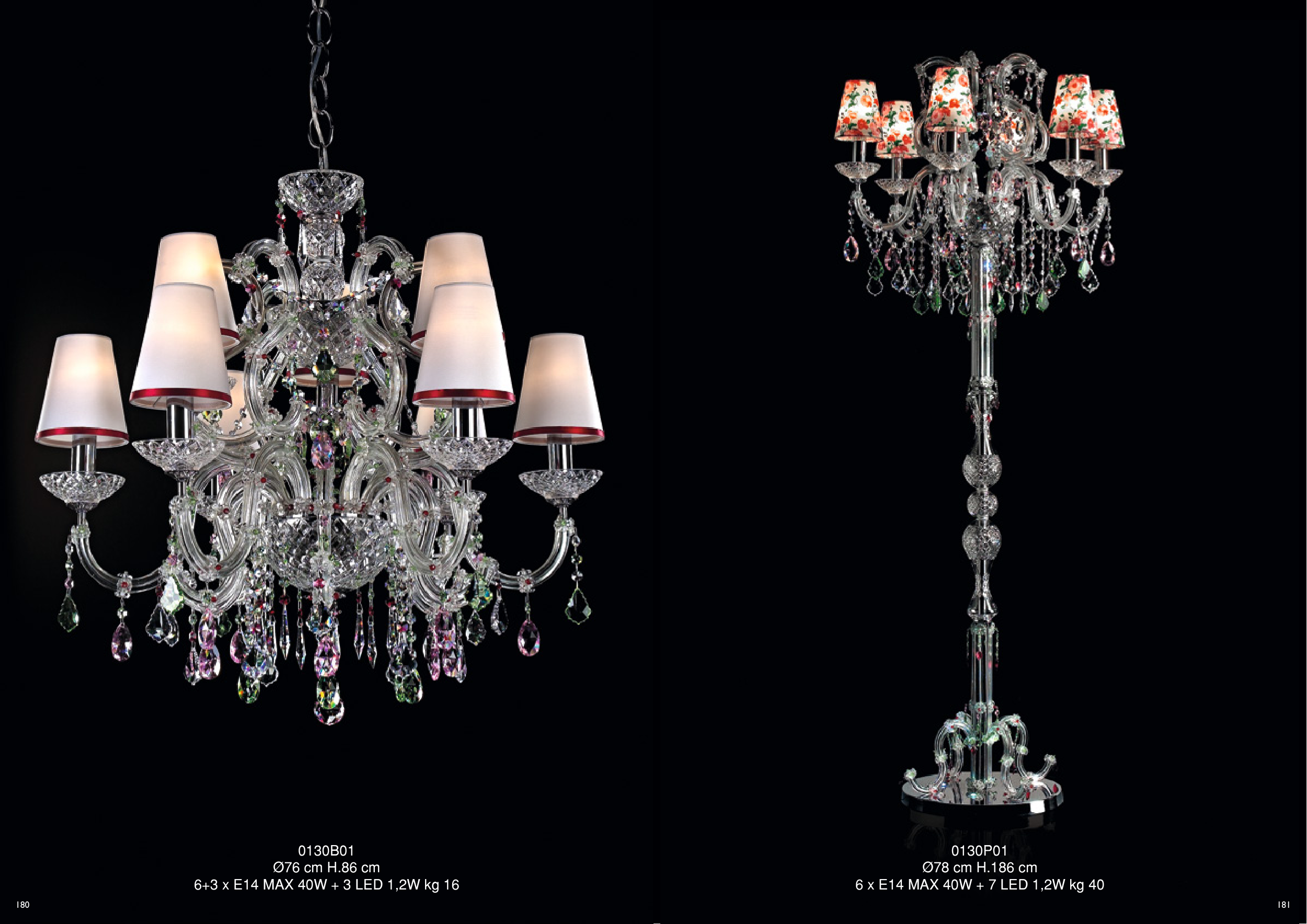 6 x E14 MAX 40W + 7 LED 1,2W kg 40