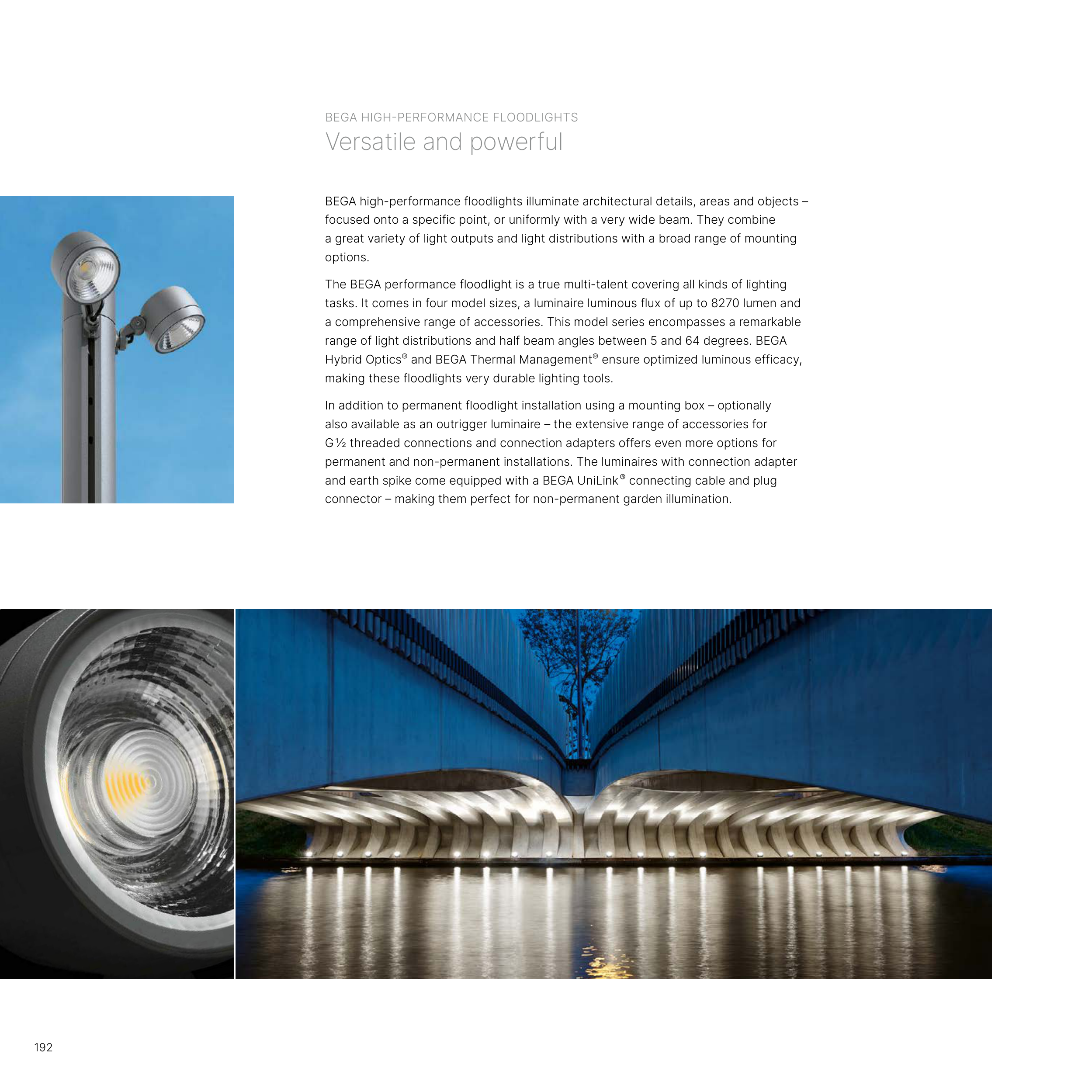 range of light distributions and half beam angles between 5 and 64 degrees. BEGA