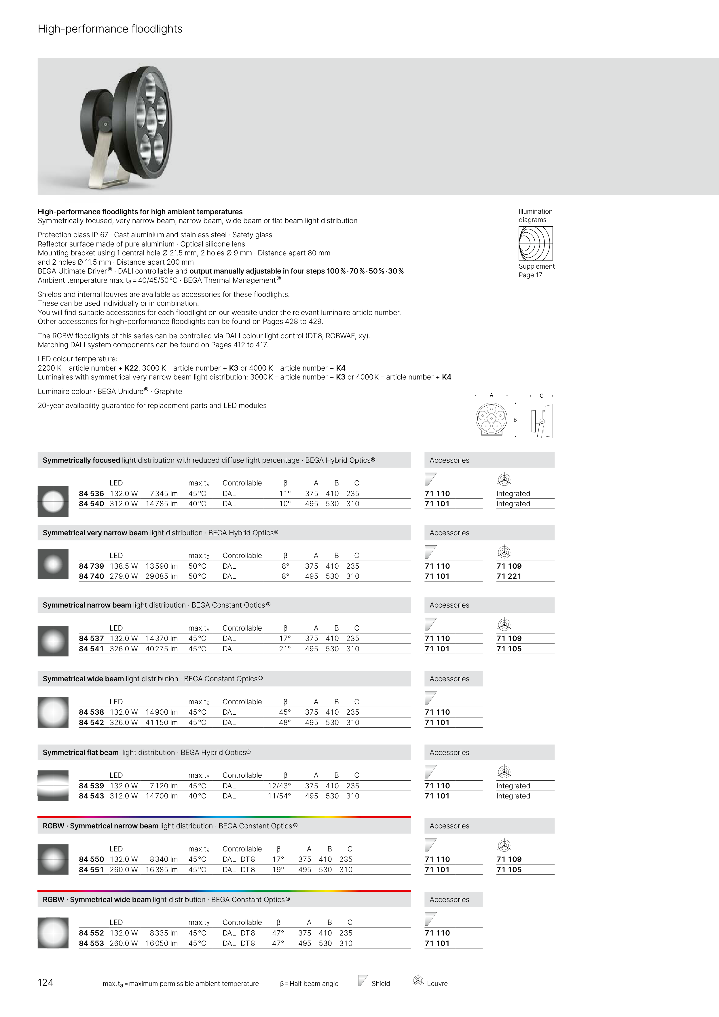 RGBW · Symmetrical narrow beam light distribution · BEGA Constant Optics ®