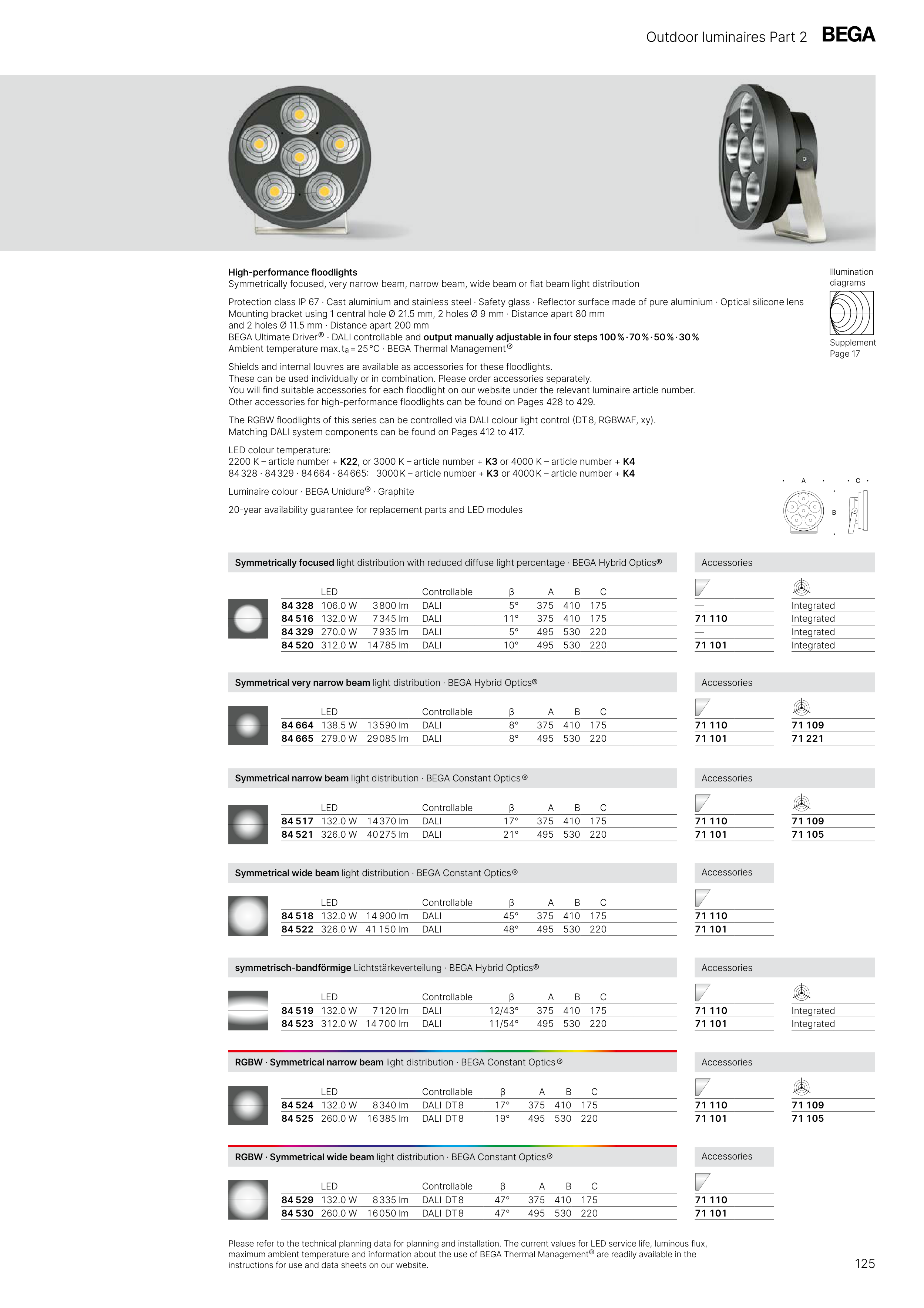 RGBW · Symmetrical narrow beam light distribution · BEGA Constant Optics ®