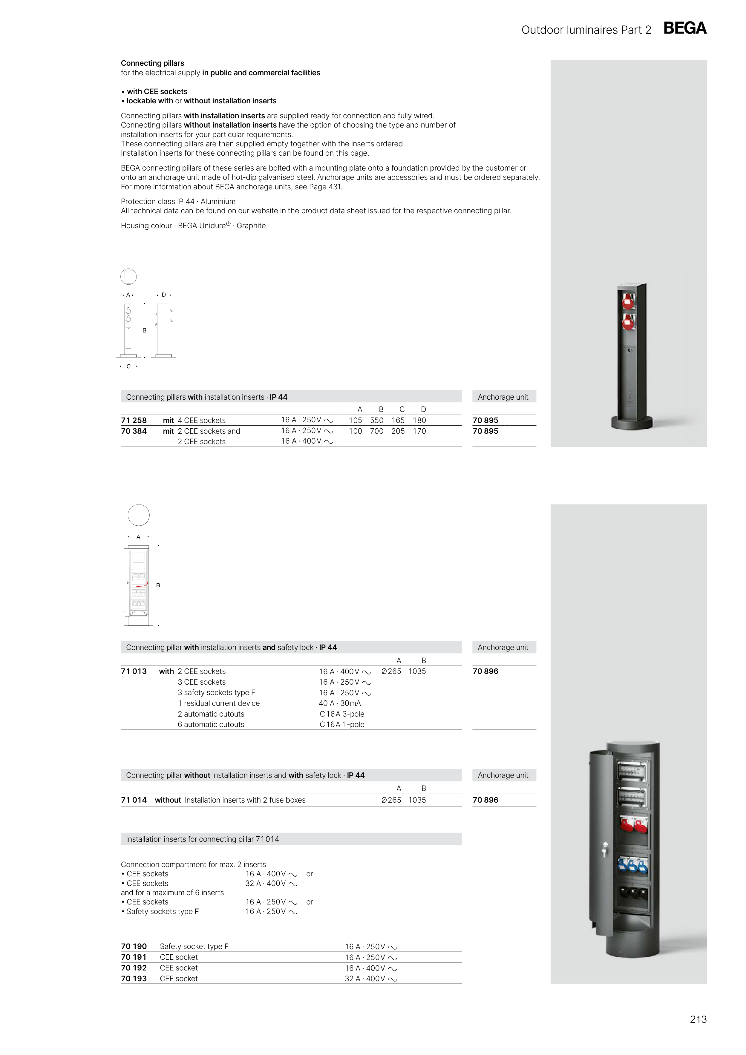Connecting pillars with installation inserts · IP 44