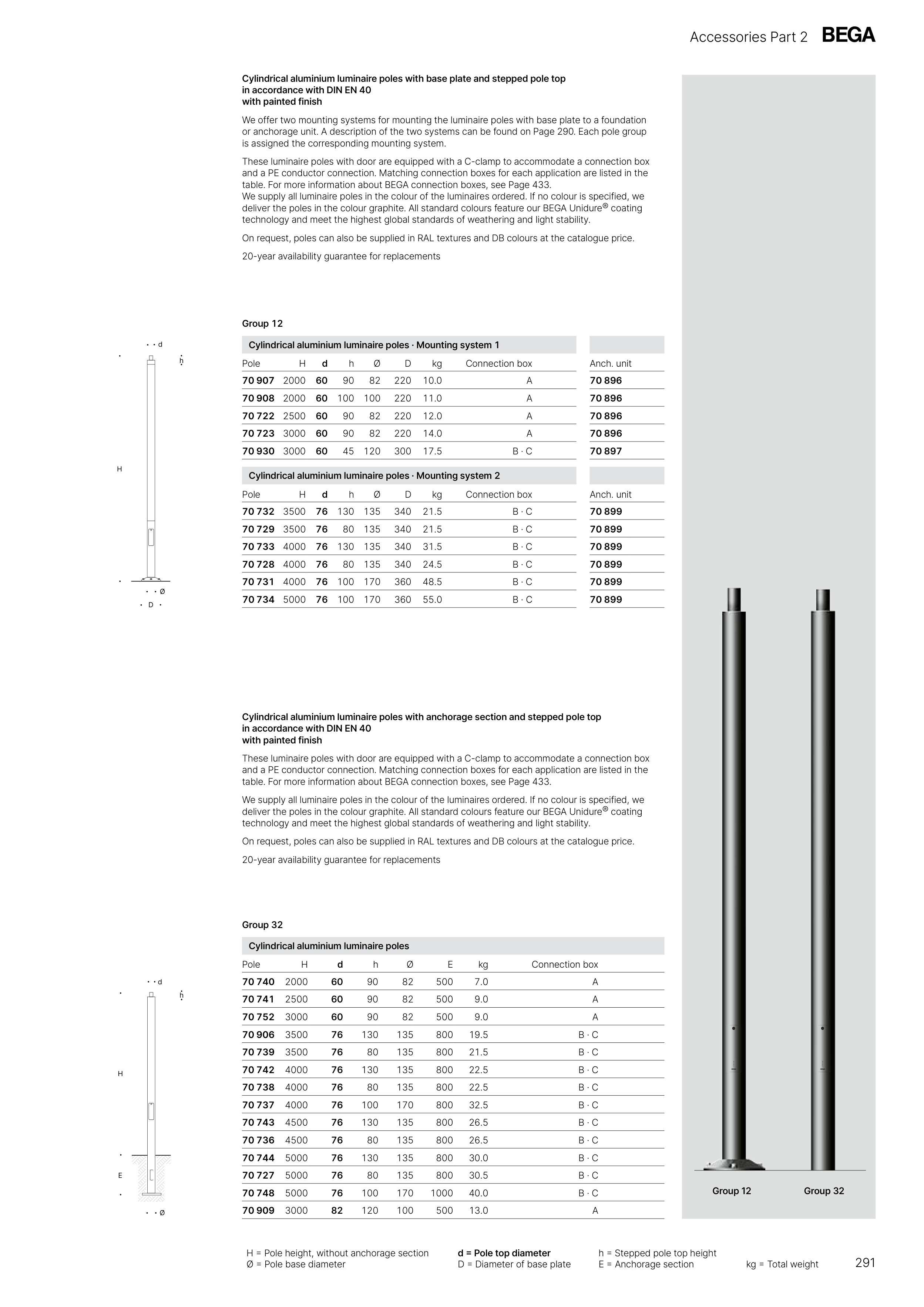 deliver the poles in the colour graphite. All standard colours feature our BEGA Unidure® coating