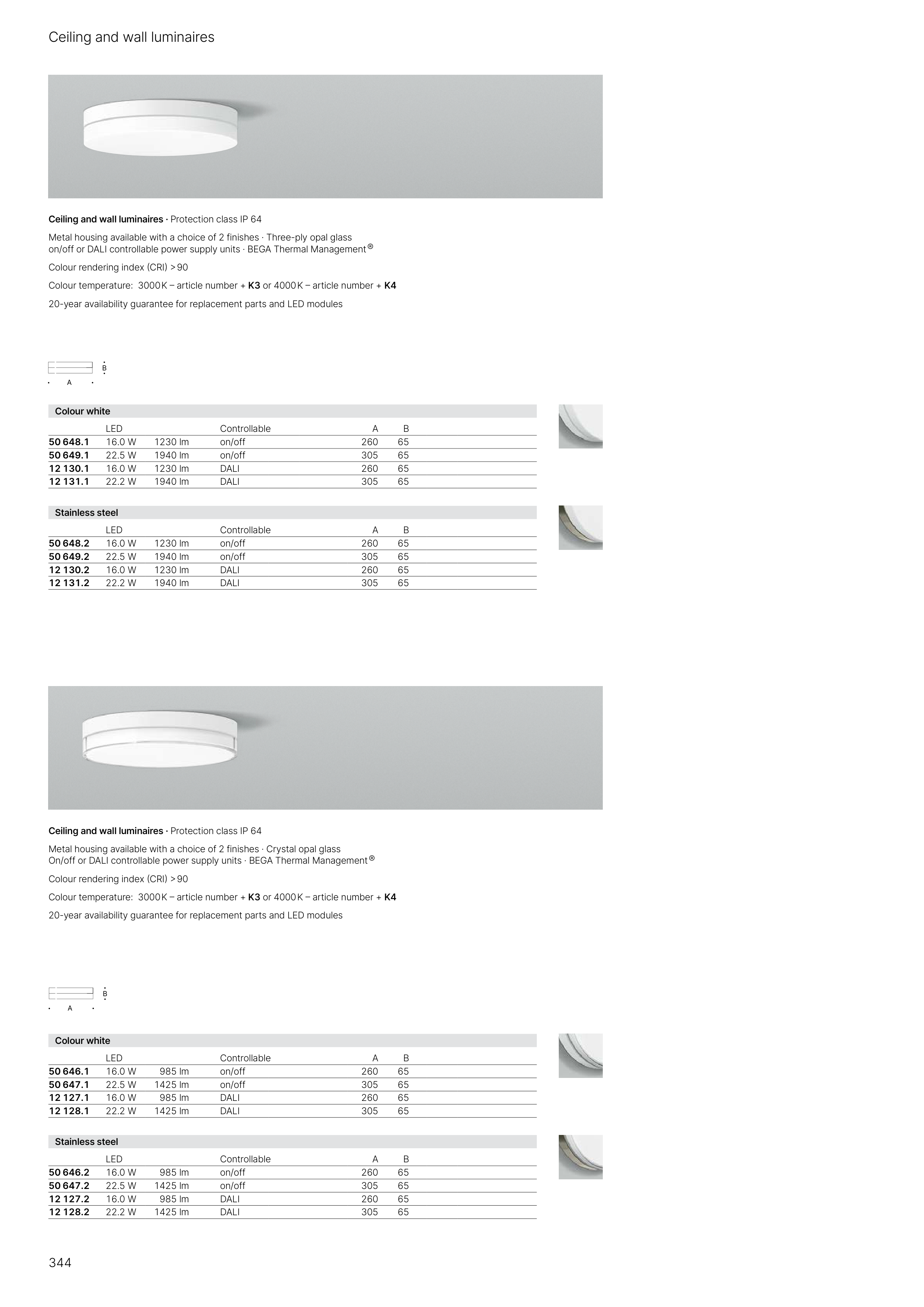 Ceiling and wall luminaires · Protection class IP 64