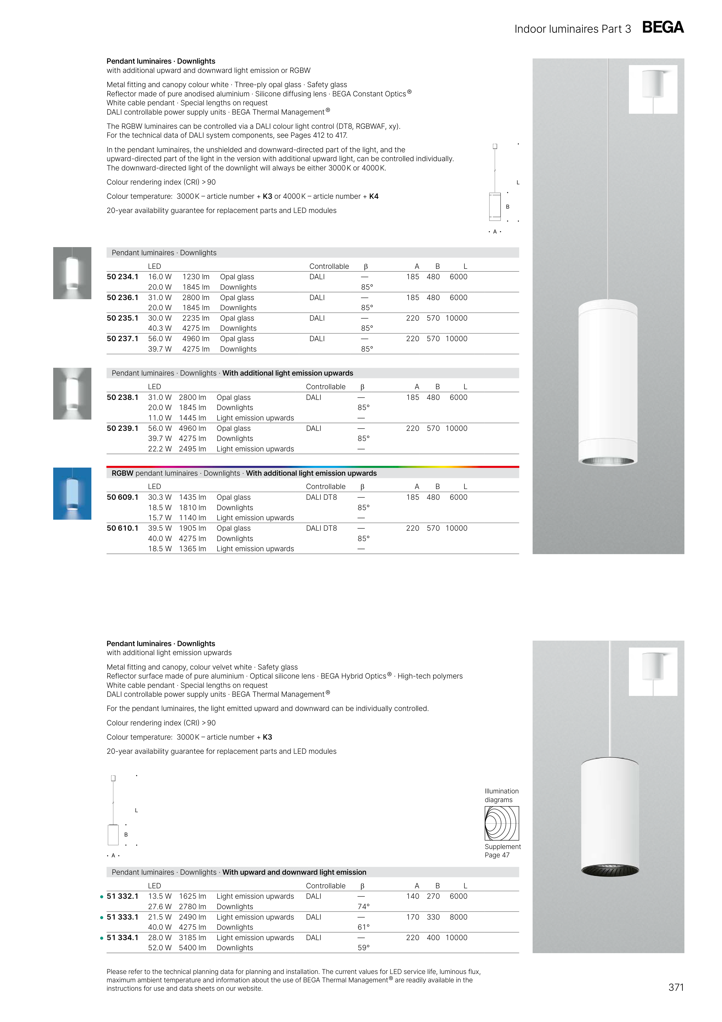 RGBW pendant luminaires · Downlights · With additional light emission upwards