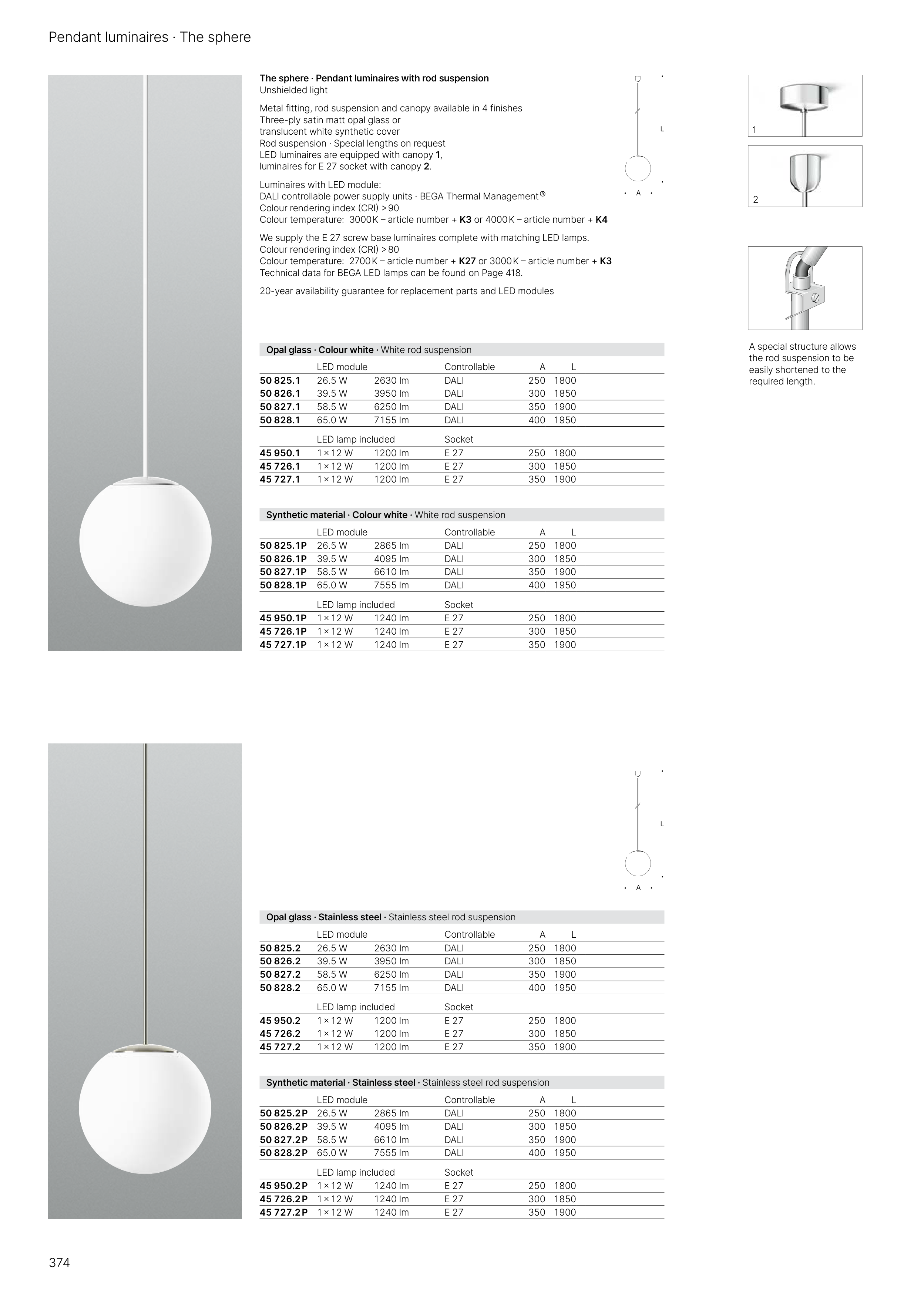 Opal glass · Stainless steel · Stainless steel rod suspension