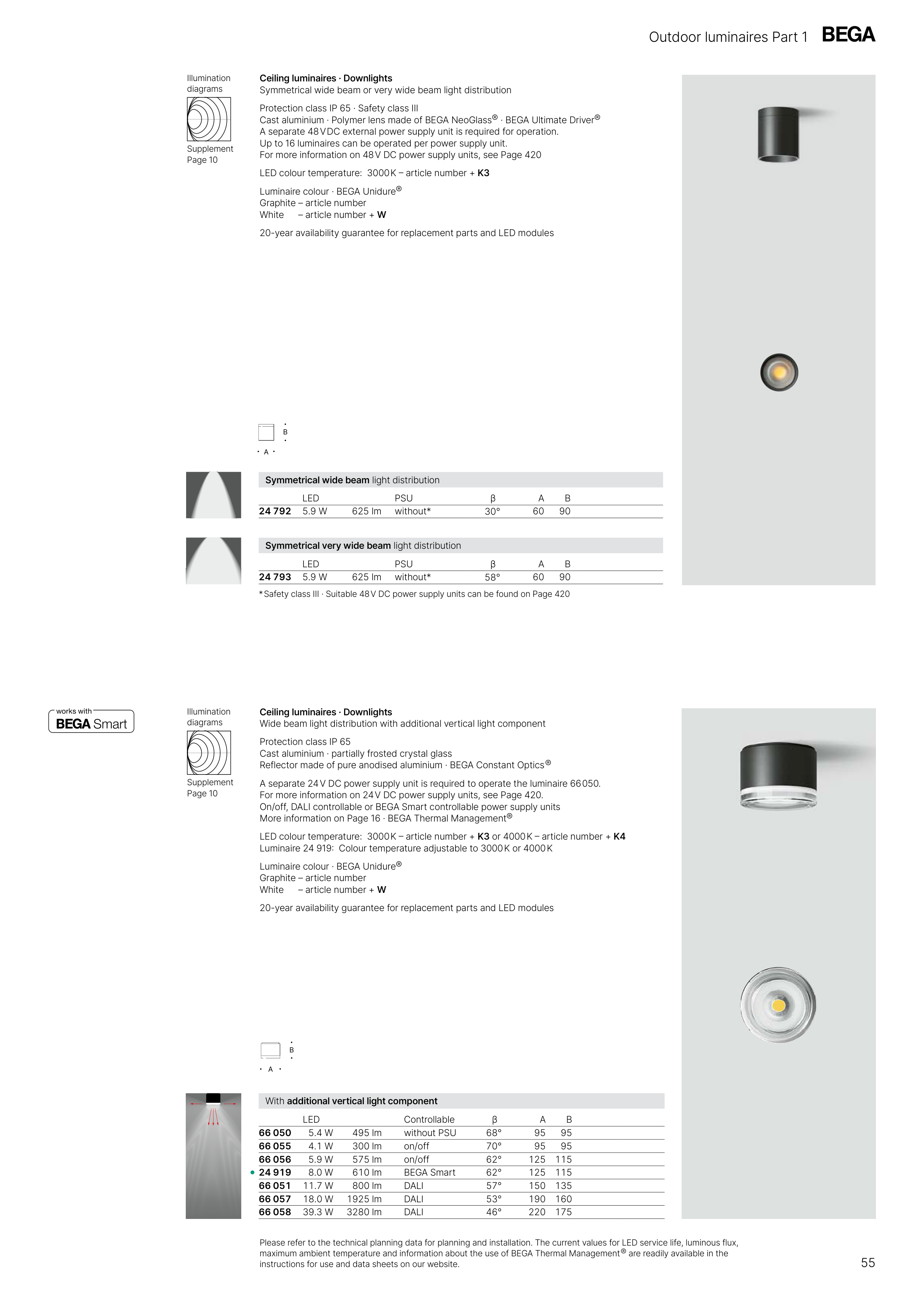 maximum ambient temperature and information about the use of BEGA Thermal Management ® are readily available in the