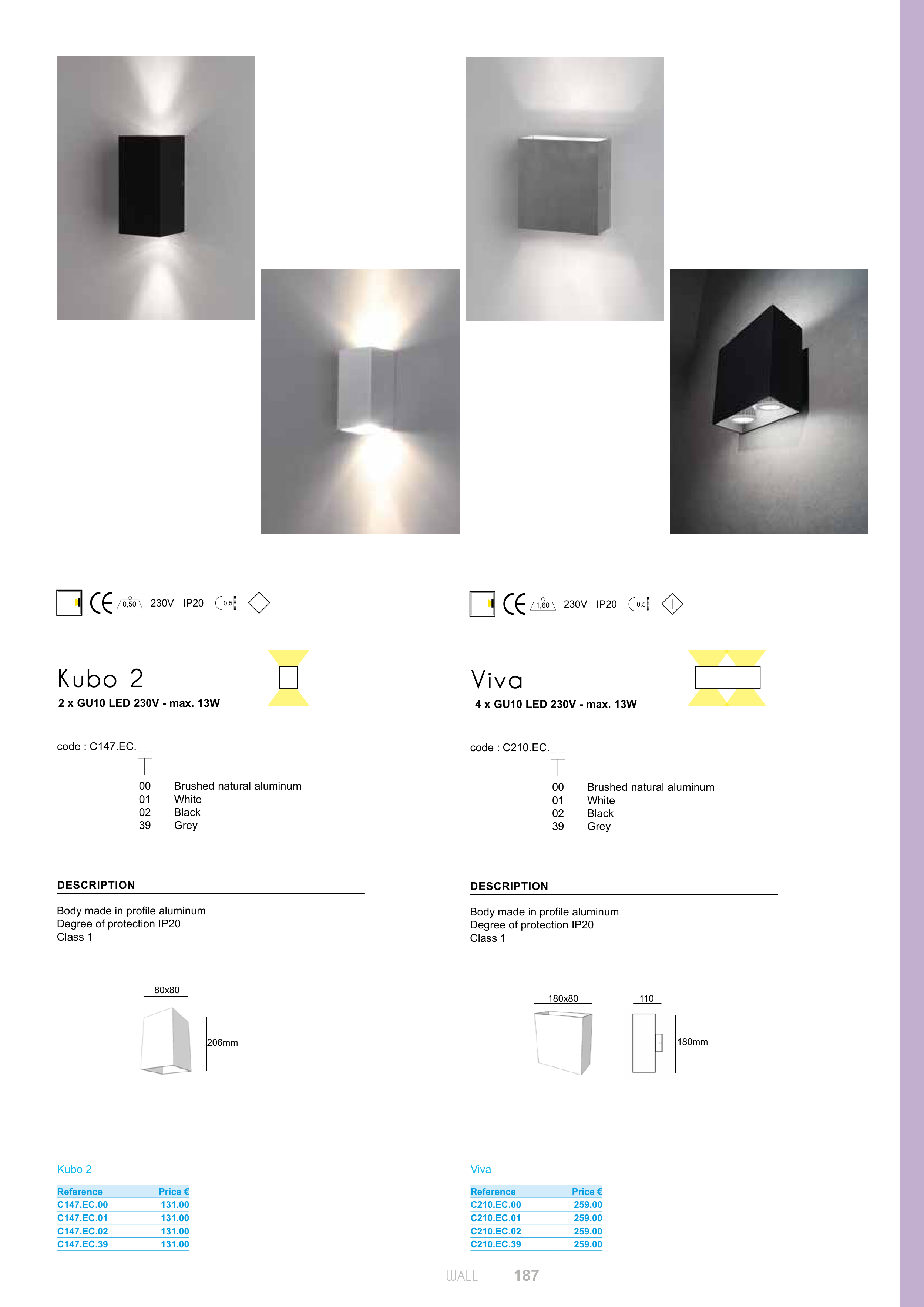 2 x GU10 LED 230V - max. 13W
