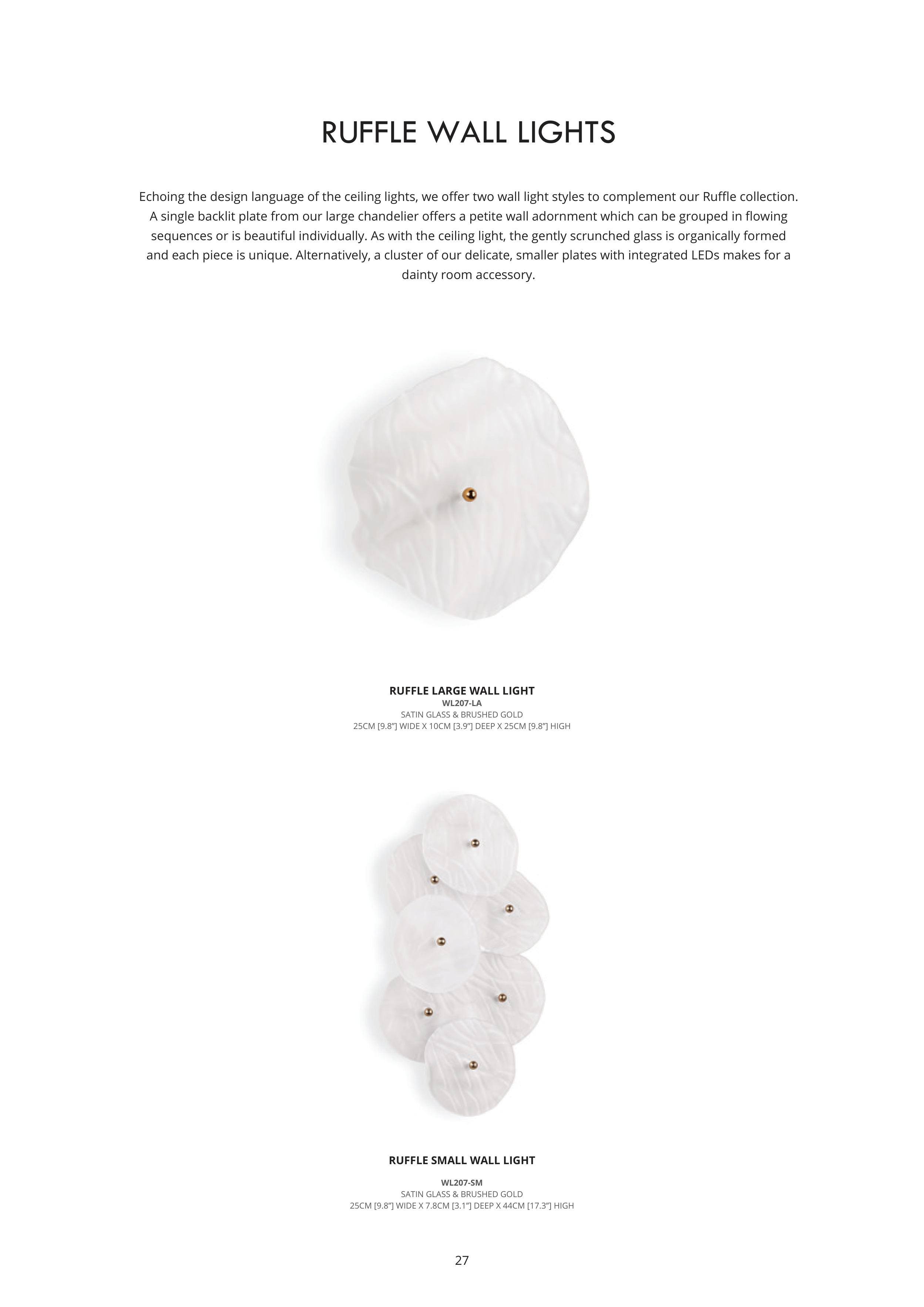 Echoing the design language of the ceiling lights, we offer two wall light styles to complement our Ruffle collection.