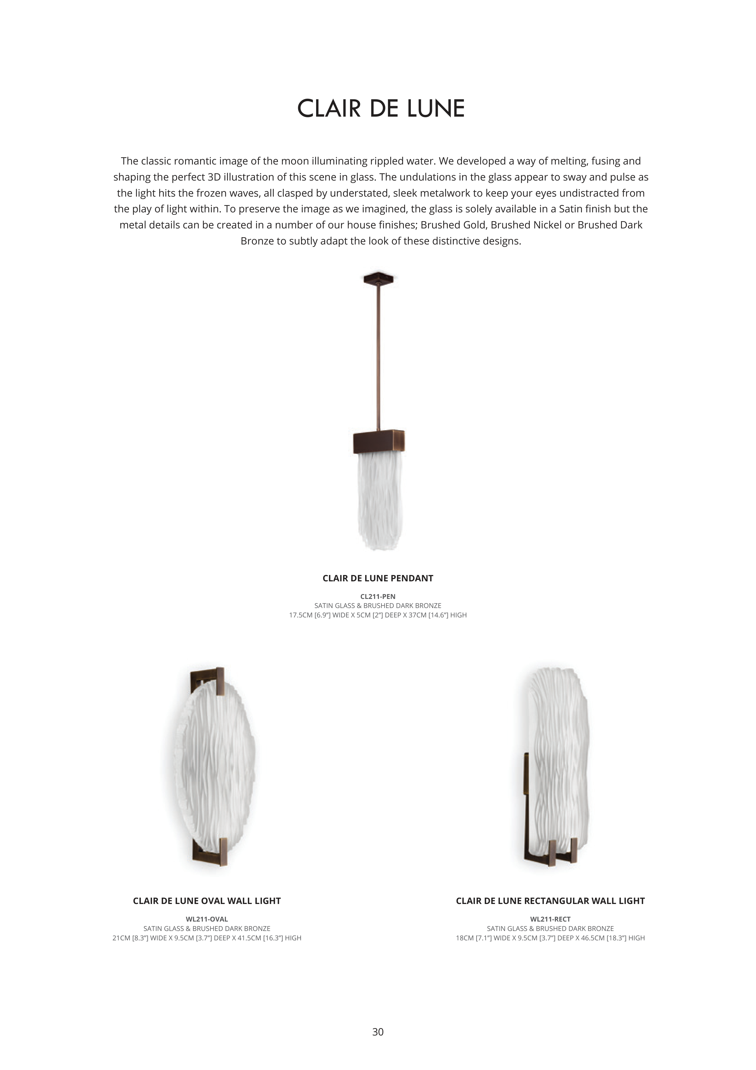 the play of light within. To preserve the image as we imagined, the glass is solely available in a Satin finish but the