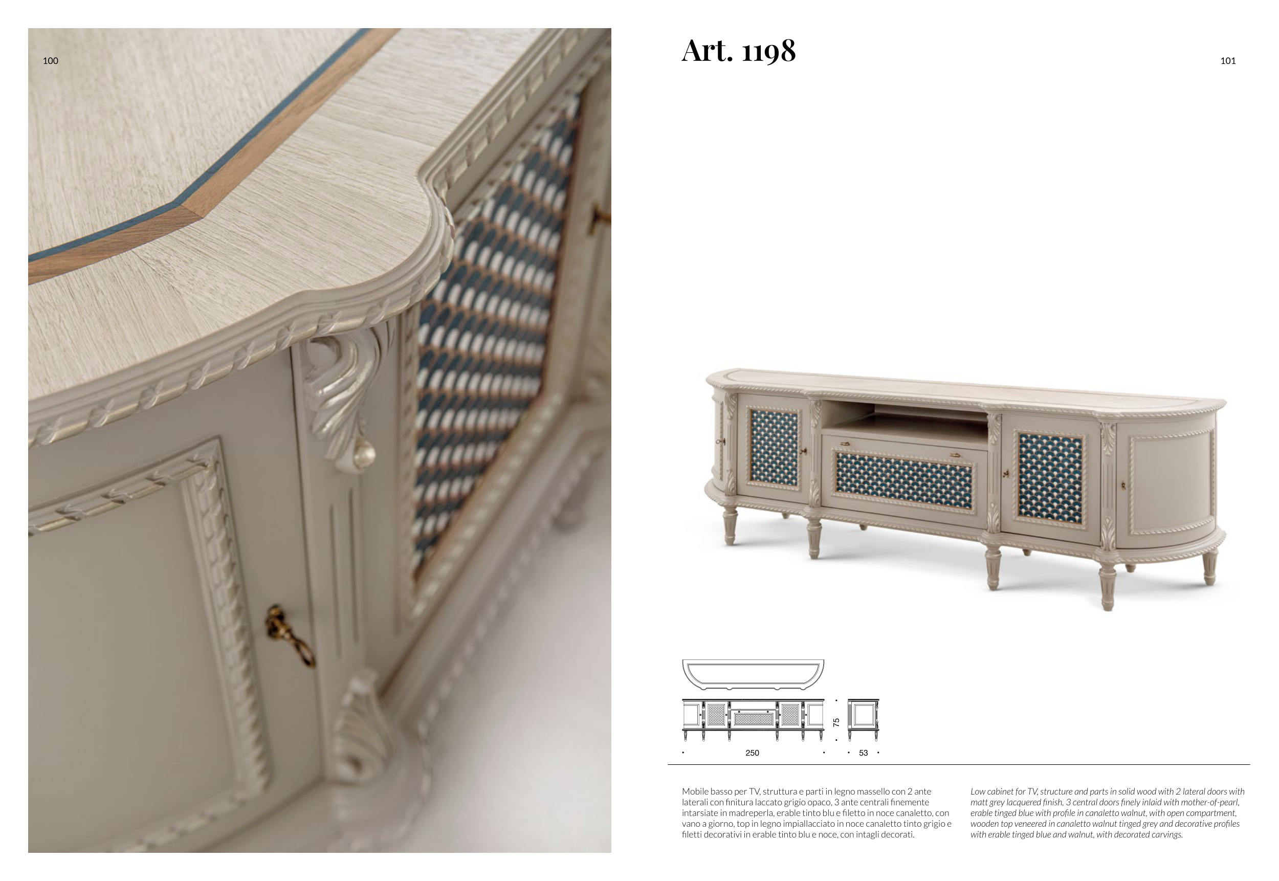 laterali con finitura laccato grigio opaco, 3 ante centrali finemente