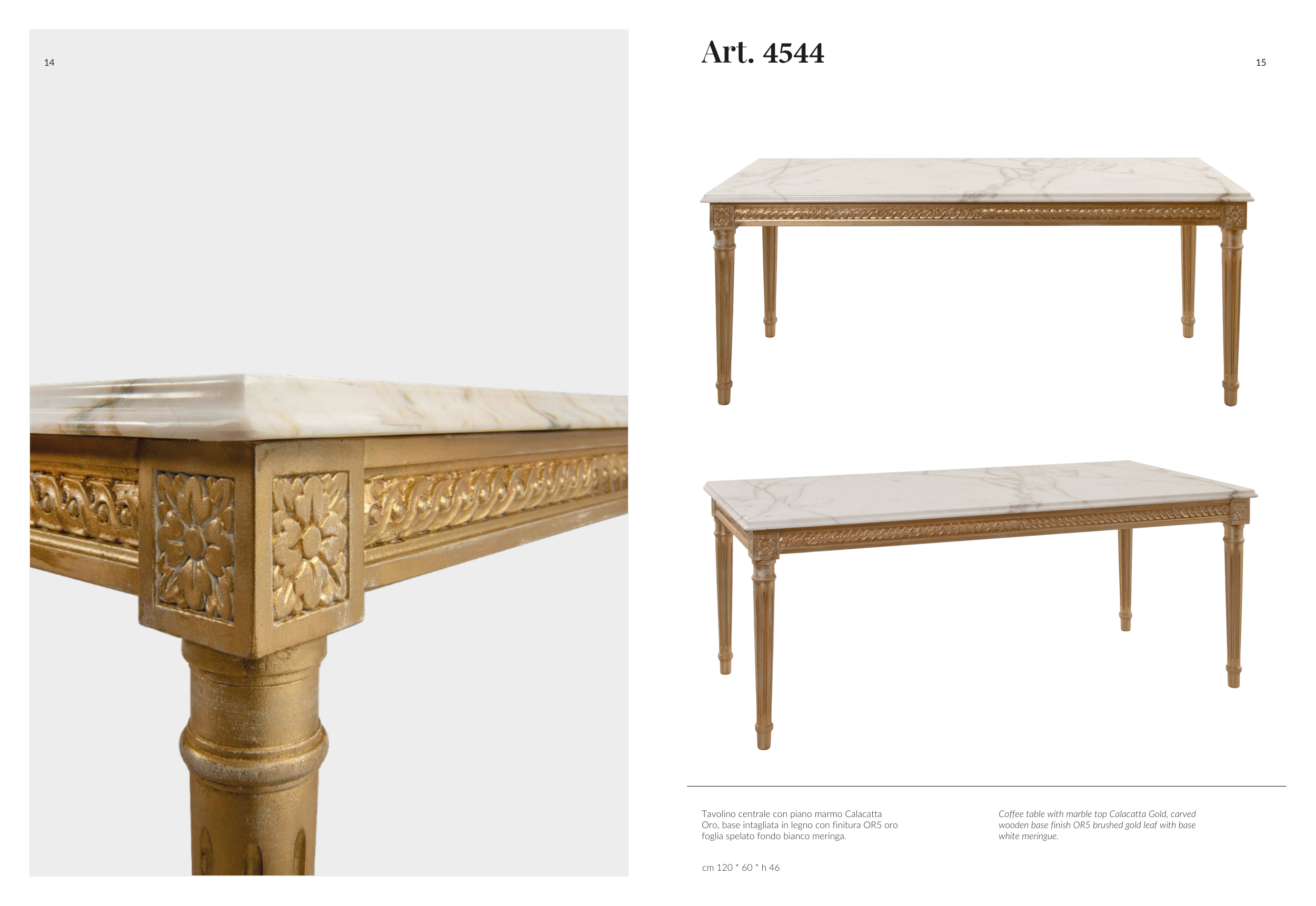 Coffee table with marble top Calacatta Gold, carved